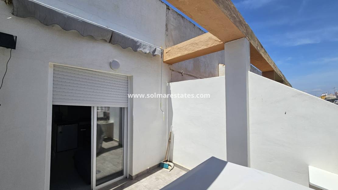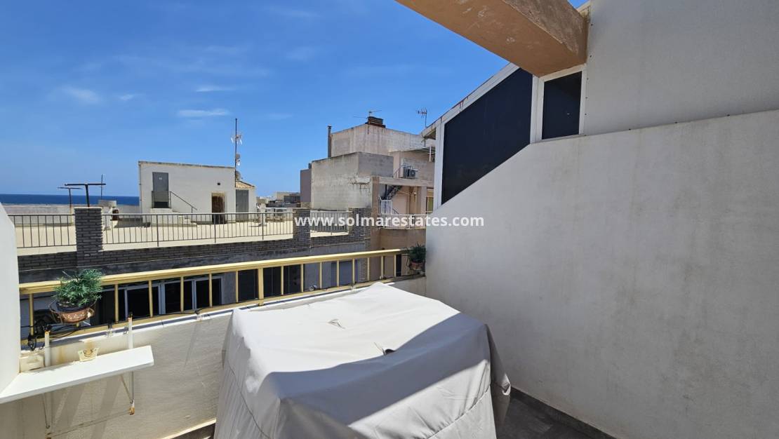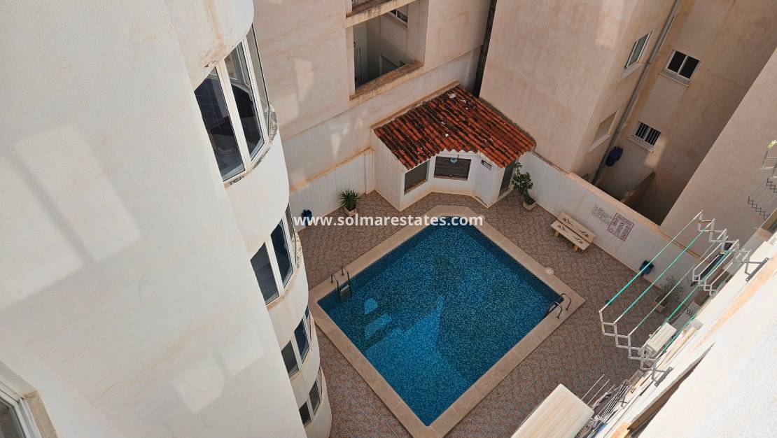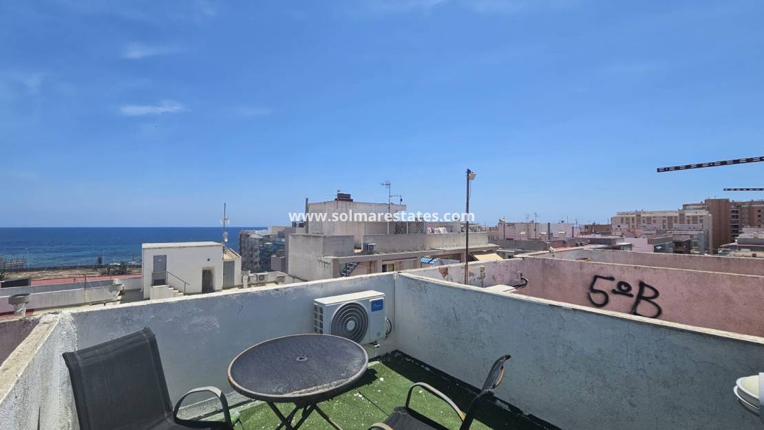 Wohn-/Esszimmer mit Klimaanlage (warm und kalt), neu eingerichtete offene Einbauküche, 1 Schlafzimmer, 1 Duschraum, Balkon neben dem Wohnzimmer, private Dachterrasse mit Meerblick, Gemeinschaftspool, Aufzug, sichere Wohnanlage und vieles mehr.