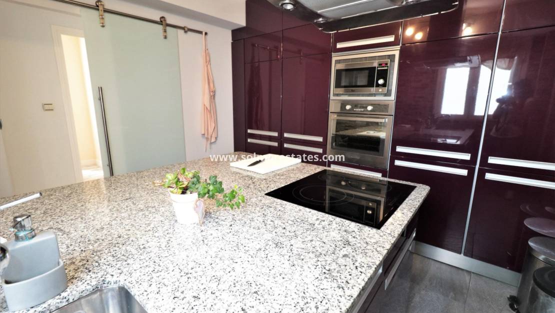 Penthouse in Torrevieja, Gegend Playa de los Naufragos, 108 m² Wohnfläche, 20 m vom Strand entfernt, 3 Doppelschlafzimmer, ein Badezimmer, renoviertes Anwesen, ausgestattete Küche, Südlage.~Extras: Zugang für Behinderte, Klimaanlage, Aufzug, Balkon, Warm- und Kaltpumpe, hell, Möbel, Terrasse, Busse, medizinische Zentren, Küste, Supermärkte, Meerblick, freie Sicht
