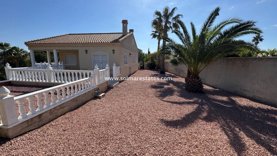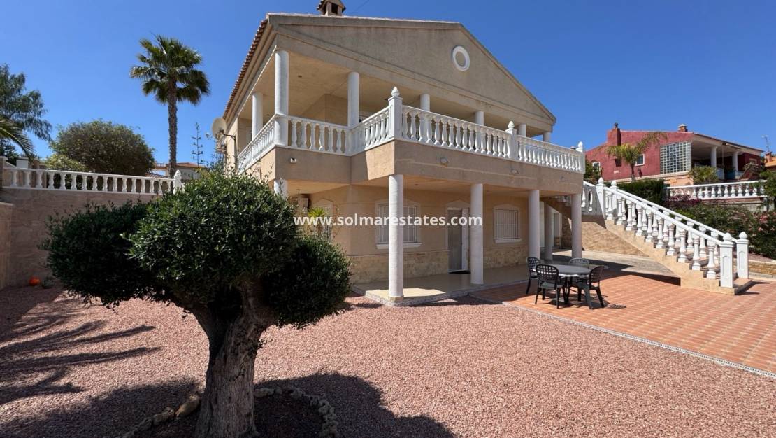 Diese imposante, freistehende Villa mit 216 m², drei Schlafzimmern und einer Wohnfläche von 216 m² befindet sich in Lomas de La Juliana in einer sehr gefragten Wohngegend mit einem Tennisclub am Eingang und dem 5-Sterne-Hotel La Finca, einem Spa und einem Golfplatz direkt vor der Haustür, wo Sie auch eine Vielzahl von Restaurants und Geschäften finden. Die wichtigsten Supermarktketten finden Sie in Almoradi und Benijofar, die nur 5 Autominuten entfernt sind. Die Strände entlang der Küste sind mit dem Auto etwa 20 Minuten entfernt. Dieses außergewöhnliche Haus steht auf einem 1220 m² großen, privaten, landschaftlich gestalteten Grundstück mit der umfassendsten Aussicht, die Sie in der Gegend finden werden. Der Hauptwohnbereich der Villa ist über eine Außentreppe zu einem überdachten Terrassenbereich in L-Form zugänglich, von dem aus Sie in den schönen, hellen Wohnbereich gelangen, der über Schiebetüren und drei Fenstersätze, einen offenen Kamin, eine unglaubliche Einbauküche/Frühstücksraum, ein Doppelschlafzimmer und ein Familienduschbad verfügt. Das Erdgeschoss des Anwesens ist von außen zugänglich und besteht aus einem Wohnzimmer, einem Torbogen zur Einbauküche, einem Badezimmer und zwei Doppelschlafzimmern. Der Garten ist mit Kieselsteinen und Fliesen ausgelegt und hat eine lange Auffahrt, die zu einer Garage und einem Carport führt. Der Poolbereich ist gefliest und von vielen ausgewachsenen Bäumen, Büschen und Palmen umgeben. Zu den Extras gehören Fußbodenheizung im gesamten Erdgeschoss, Klimaanlage, Einbauschränke in allen Schlafzimmern und ein Bewässerungssystem.