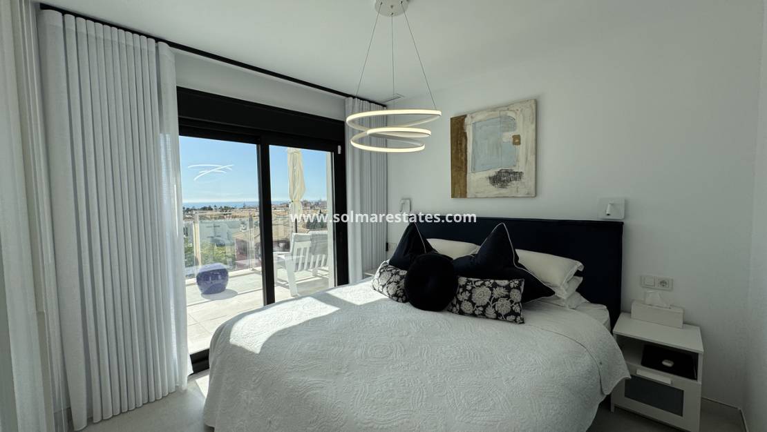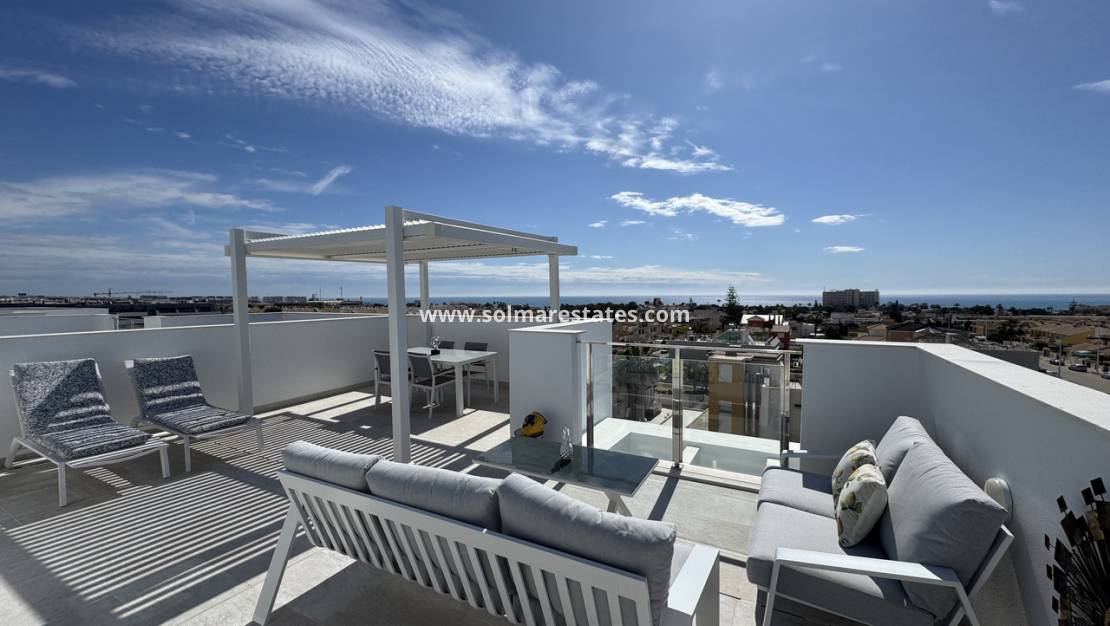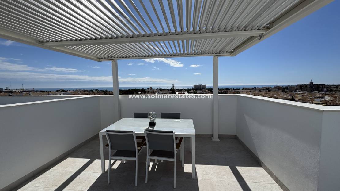 Willkommen in Ihrem gehobenen Rückzugsort im Zentrum von La Zenia – einem luxuriösen Penthouse mit 2 Schlafzimmern und 2 Bädern, das stilvolles modernes Design mit unschlagbarem Blick auf das Mittelmeer verbindet.