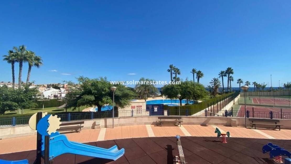 Willkommen in diesem atemberaubenden Eck-Penthouse im Herzen von Mil Palmeras, wo Küstenleben auf ultimativen Komfort trifft. Dieses charmante Apartment mit 2 Schlafzimmern und 1 Badezimmer bietet einen großzügigen Wohnbereich, der sich perfekt zum Entspannen oder für gesellige Stunden eignet, und eine helle, luftige Atmosphäre. Betreten Sie die private Terrasse oder steigen Sie die Treppe hinauf zum großzügigen Solarium – Ihrer persönlichen Oase mit atemberaubendem Meerblick.