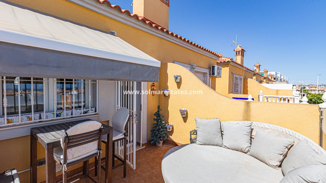 Dieses charmante Reihenhaus befindet sich in La Zenia, Orihuela Costa, nur 900 Meter vom Strand entfernt, in einer der begehrtesten Gegenden der Costa Blanca. Das teilweise renovierte Anwesen verfügt über eine erweiterte Küche, die im Erdgeschoss für mehr Raum und Funktionalität sorgt.