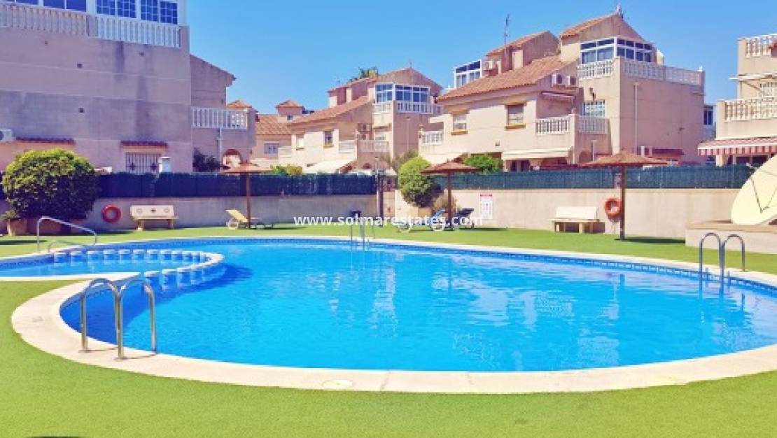 Ein Vierfamilienhaus mit 2 Schlafzimmern und 1,5 Bädern in Res Coral, Torrevieja, Costa Blanca.