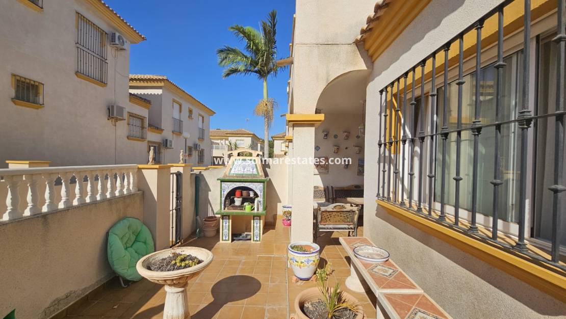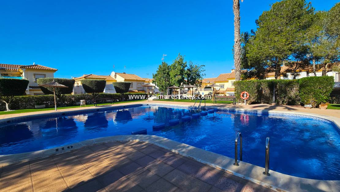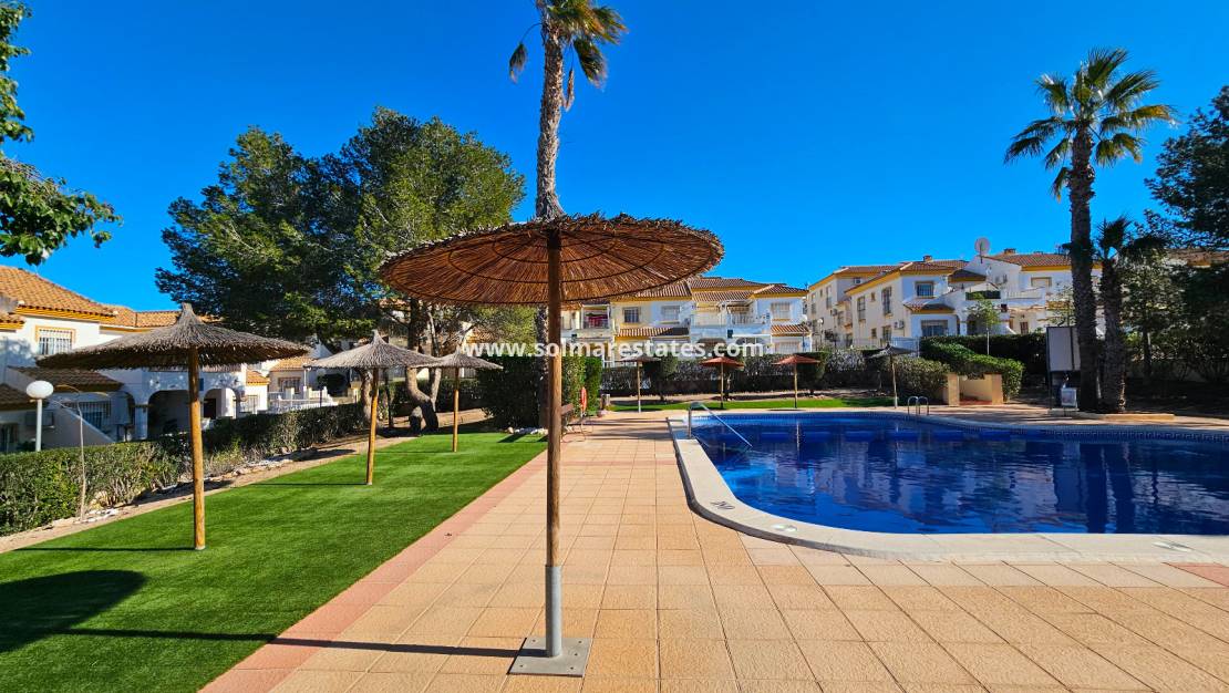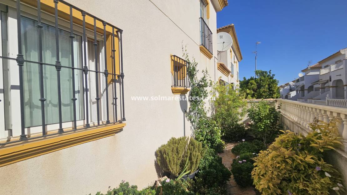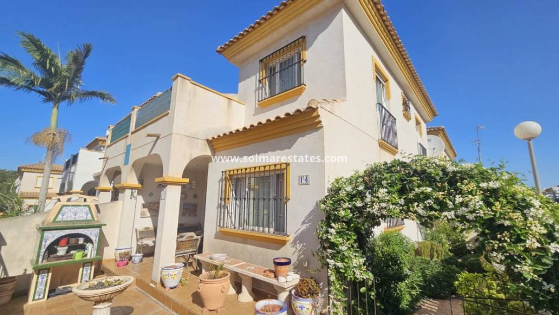 Dieses attraktive Haus im Quad-Stil mit 3 Schlafzimmern und 2 Bädern befindet sich in der begehrten geschlossenen Wohnanlage Laderas del Sol in Los Altos , nur eine kurze Fahrt von den Stränden Playa Flamenca und Punta Prima entfernt.