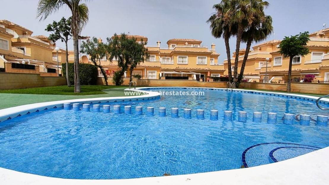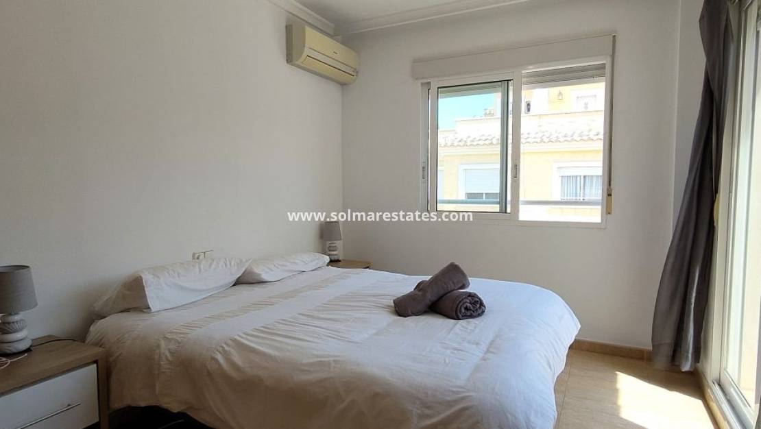 Eingebettet in die begehrte Wohngegend Mariblanca XVI in Punta Prima, Costa Blanca, bietet dieses wunderschön präsentierte Stadthaus mit 4 Schlafzimmern und 3 Bädern eine perfekte Mischung aus Komfort, Charme und erstklassigem mediterranen Wohnen.