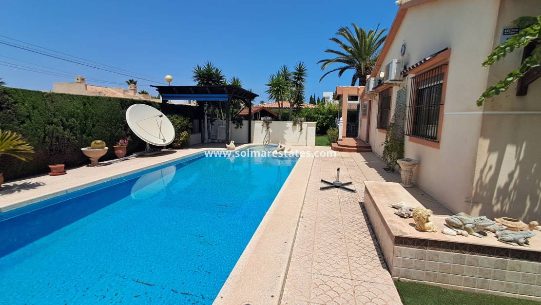Eingebettet in die exklusive Urbanisation Cabo Roig bietet diese bezaubernde Villa im spanischen Stil die perfekte Mischung aus Komfort, Charme und mediterranem Lebensstil. Dank der idealen Lage in der Nähe wichtiger Dienstleistungen, lokaler Annehmlichkeiten, der atemberaubenden Strände von Orihuela Costa und mehrerer erstklassiger Golfplätze bietet diese Immobilie sowohl Urlaubern als auch Dauerbewohnern eine außergewöhnliche Gelegenheit.