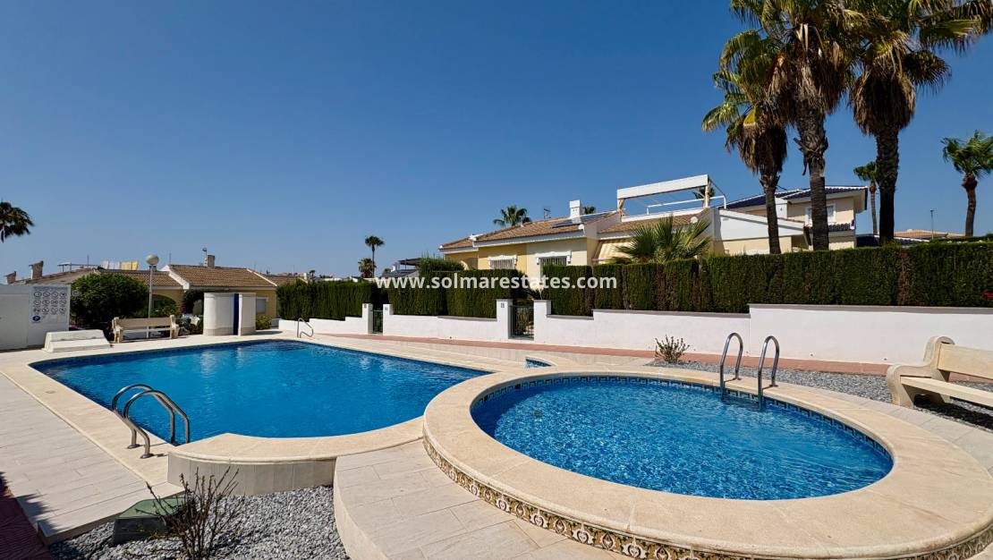 Entdecken Sie diese reizende Doppelhaushälfte im Erdgeschoss in perfekter Lage in der begehrten Gegend der Plaza la Fiesta in Ciudad Quesada (Rojales). In der sicheren und privaten Wohnanlage Conjunto Romeo gelegen, bietet sie eine ruhige, familienfreundliche Atmosphäre mit hervorragenden Annehmlichkeiten in der Nähe.