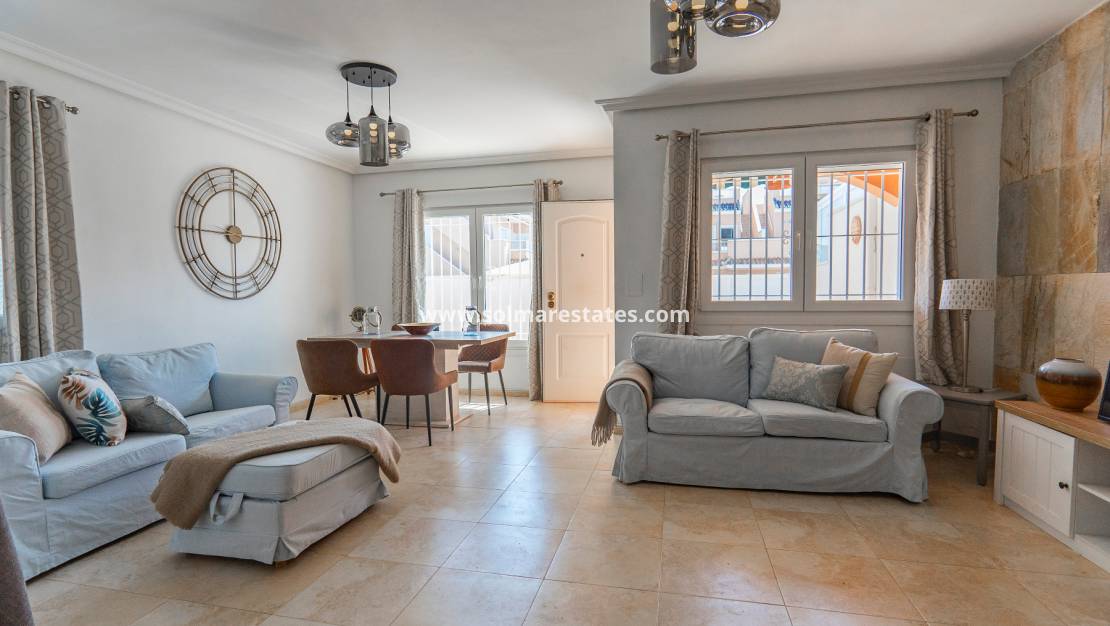 Willkommen in dieser atemberaubenden Doppelhaushälfte mit 3 Schlafzimmern und 2 Bädern in perfekter Lage in der begehrten Wohngegend Lomas de Cabo Roig. Auf einem großzügigen, vollständig gefliesten und privaten Grundstück gelegen, bietet dieses Haus eine ideale Mischung aus Stil, Komfort und Bequemlichkeit – und das alles nur einen kurzen Spaziergang von den örtlichen Einkaufszentren mit einer großen Auswahl an Bars, Restaurants und einem Supermarkt entfernt.