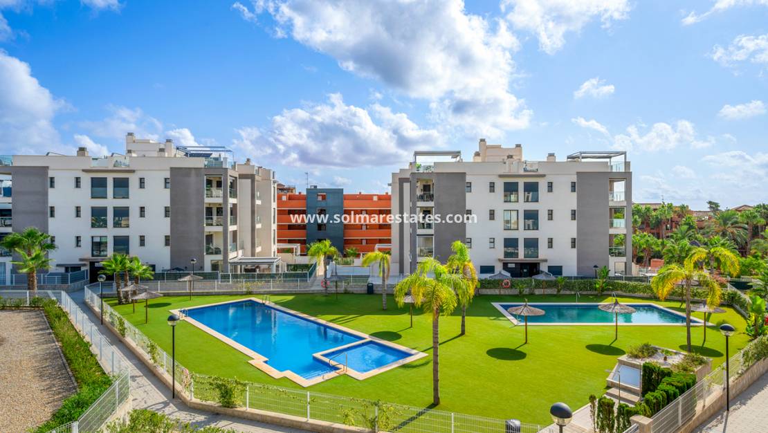 Den Bewohnern steht ein gepflegter Gemeinschaftsbereich mit drei Swimmingpools, einem Kinderspielplatz, einem Tennis-/Padelplatz und wunderschön angelegten Gärten zur Verfügung.