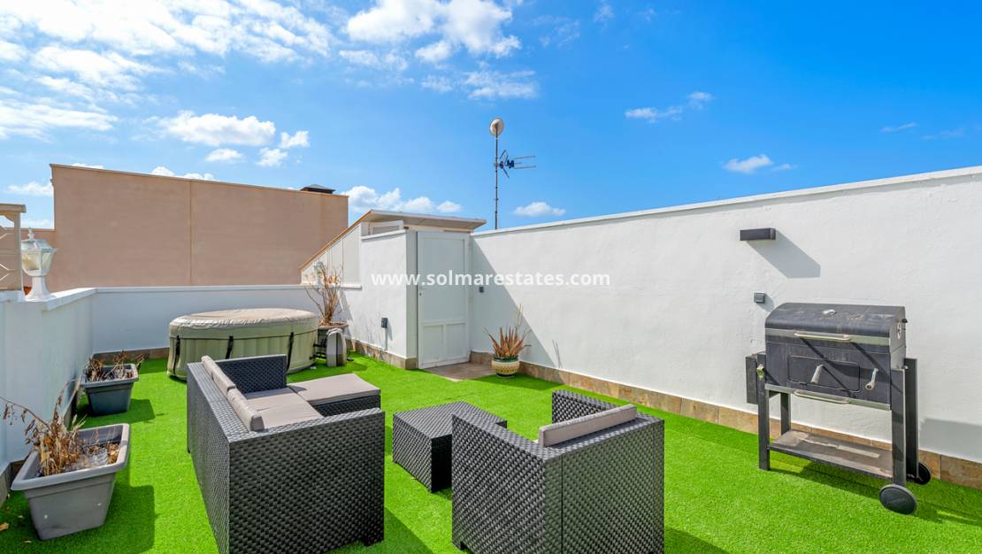 Ein besonderes Highlight ist die private Dachterrasse , die über eine Außentreppe erreichbar ist und viel Platz zum Entspannen und Unterhalten bietet. Sie ist mit Gartenmöbeln und einem Whirlpool ausgestattet – perfekt, um die spanische Sonne in absoluter Privatsphäre zu genießen.