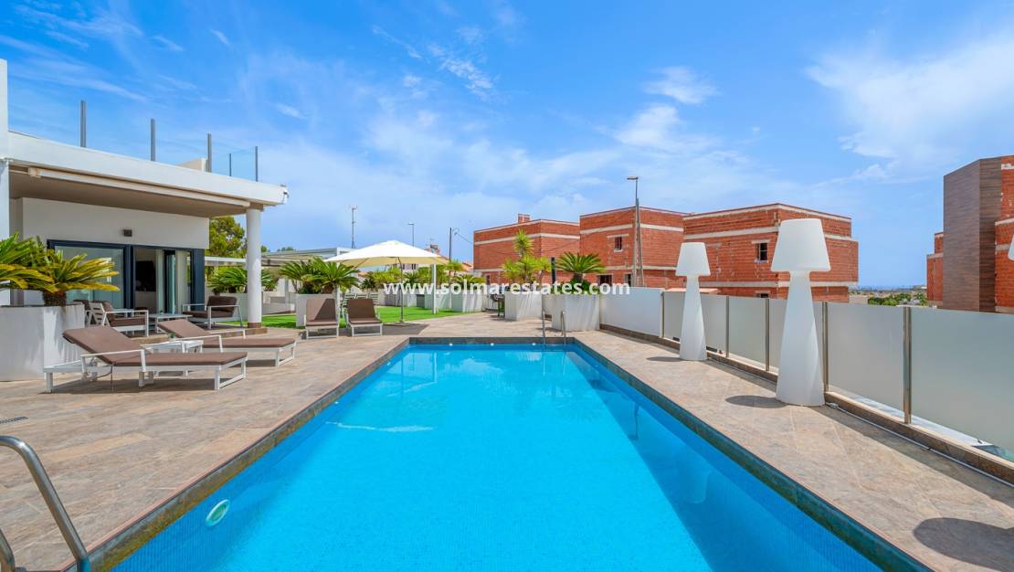 Diese stilvolle, freistehende Villa aus dem Jahr 2018 bietet modernes Wohnen in einer der begehrtesten Gegenden der Costa Blanca. Mit 113 m² Wohnfläche auf einem großzügigen 464 m² großen Grundstück vereint das Anwesen Komfort, Design und Funktionalität – ideal für mediterranes Wohnen.