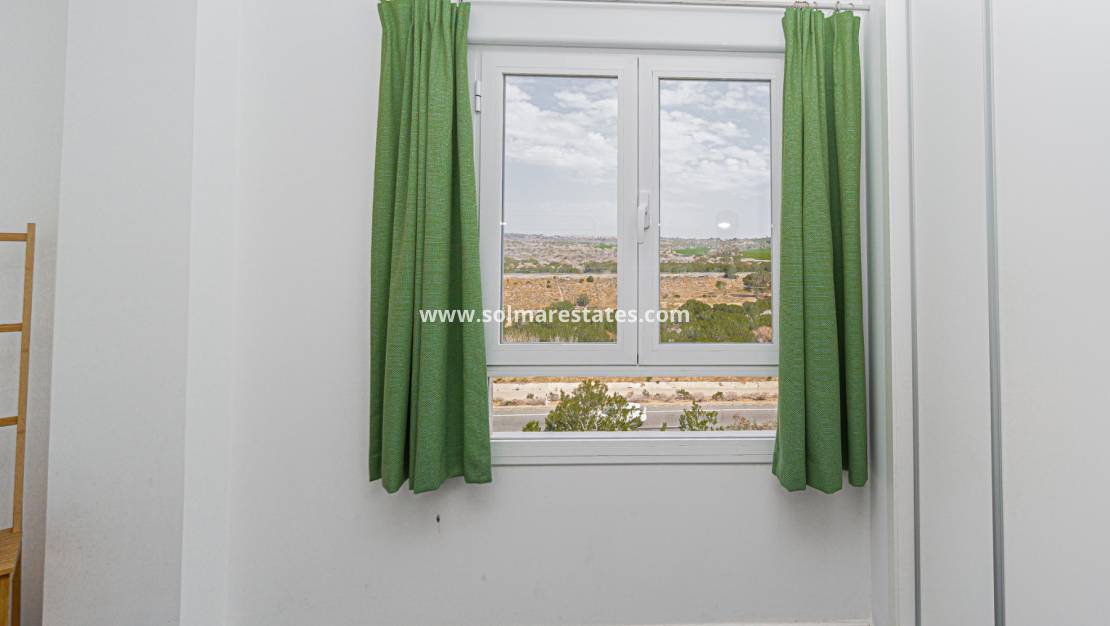 Die Raumaufteilung ist praktisch und einladend zugleich. Rechts vom Eingang befinden sich zwei großzügige Schlafzimmer mit herrlichem Blick auf die Campoamor-Schlucht und die Golfplätze Las Ramblas und Campoamor – eine perfekte Kulisse für Natur- und Golfliebhaber.