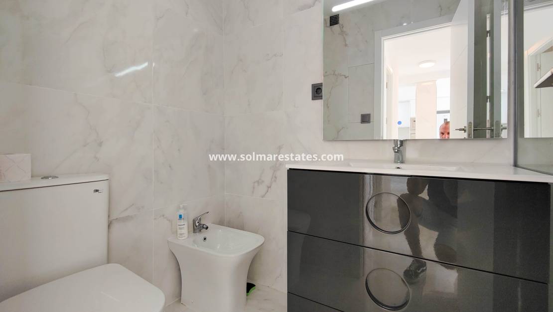 Die Wohnung verfügt über 2 geräumige Schlafzimmer mit Einbauschränken und Zugang zur Terrasse, 2 moderne Badezimmer mit Duschen und ein helles Wohn-/Esszimmer mit einer brandneuen integrierten Küche.