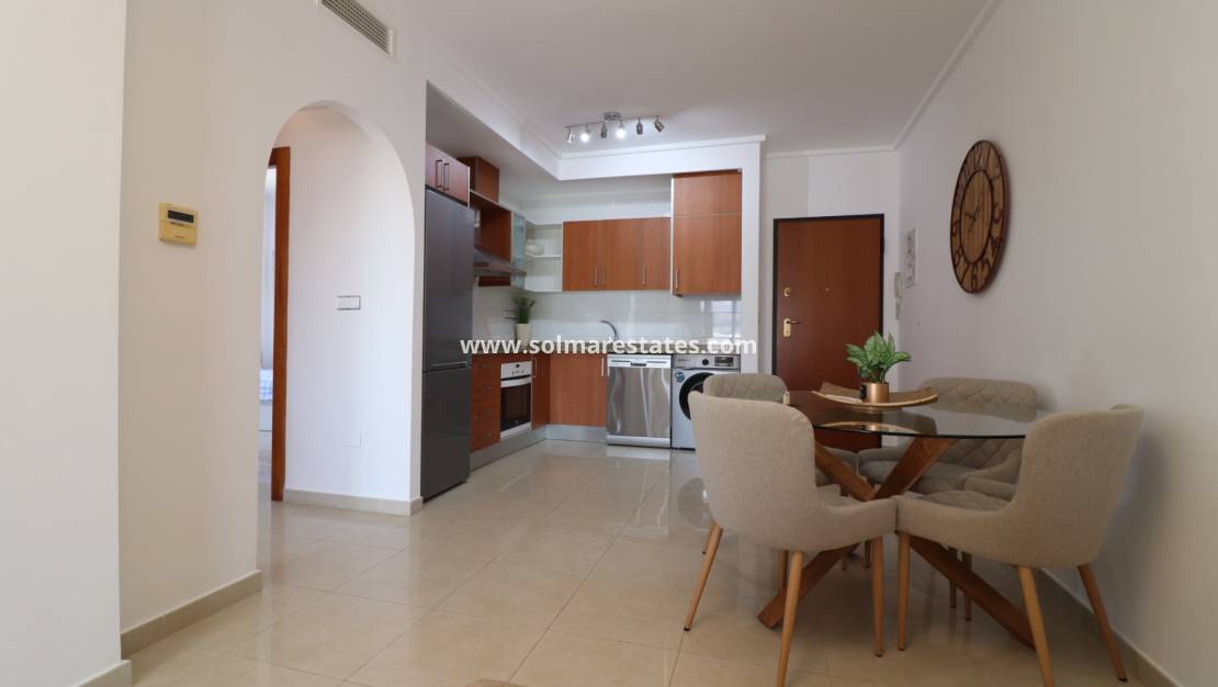 Diese wunderschön gestaltete, nach Südwesten ausgerichtete Eckwohnung im obersten Stockwerk befindet sich in der begehrten Wohnanlage Residencial Albamar in Doña Pepa, Ciudad Quesada. Inmitten einer sicheren und gepflegten Anlage bietet das Anwesen Komfort, Stil und eine erstklassige Lage in der Nähe aller Annehmlichkeiten.