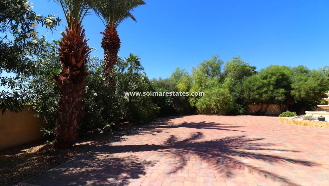 Der ummauerte, angelegte Garten wurde sorgfältig für einen pflegeleichten und entspannten Aufenthalt im Freien angelegt. Er umfasst einen 10 x 5 Meter großen privaten Pool, einen Carport, einen Parkplatz abseits der Straße, einen zentralen Springbrunnen, alte Palmen und Bäume, einen Grillplatz und ein Bewässerungssystem. Die Rückseite des Anwesens bietet einen herrlichen, offenen Blick auf die umliegende Landschaft und unterstreicht die friedliche Umgebung.