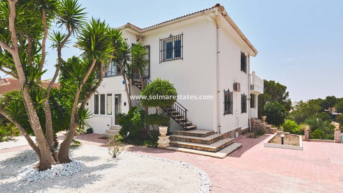 Fantastische Gelegenheit zum Erwerb einer großen Familienvilla auf einem 992 m² großen Grundstück mit privatem Pool, Parkplatz abseits der Straße und atemberaubendem Blick auf die Landschaft in einer Grünzone im begehrten Dorf Pinar de Campoverde. Nur wenige Gehminuten von allen Annehmlichkeiten und nur 10 km von den mit der Blauen Flagge ausgezeichneten Stränden Mil Palmeras und Torre de la Horadada entfernt, bietet dieses Anwesen Platz, Privatsphäre und Flexibilität für ein Familienleben.