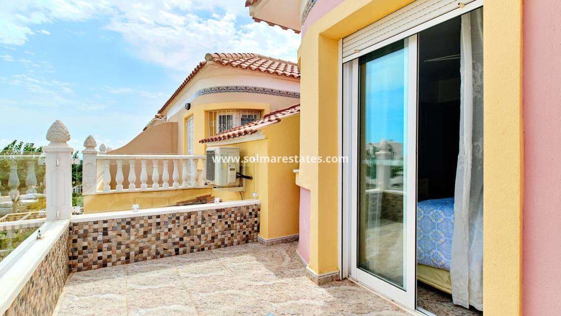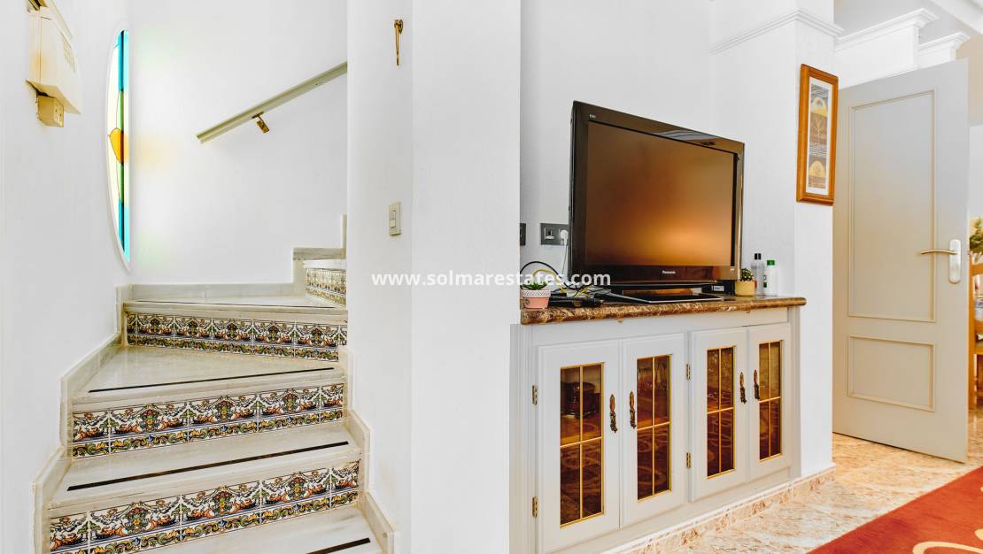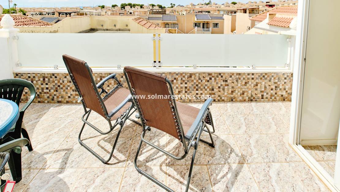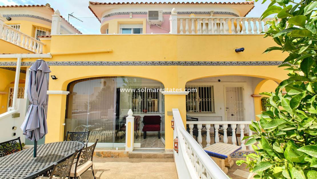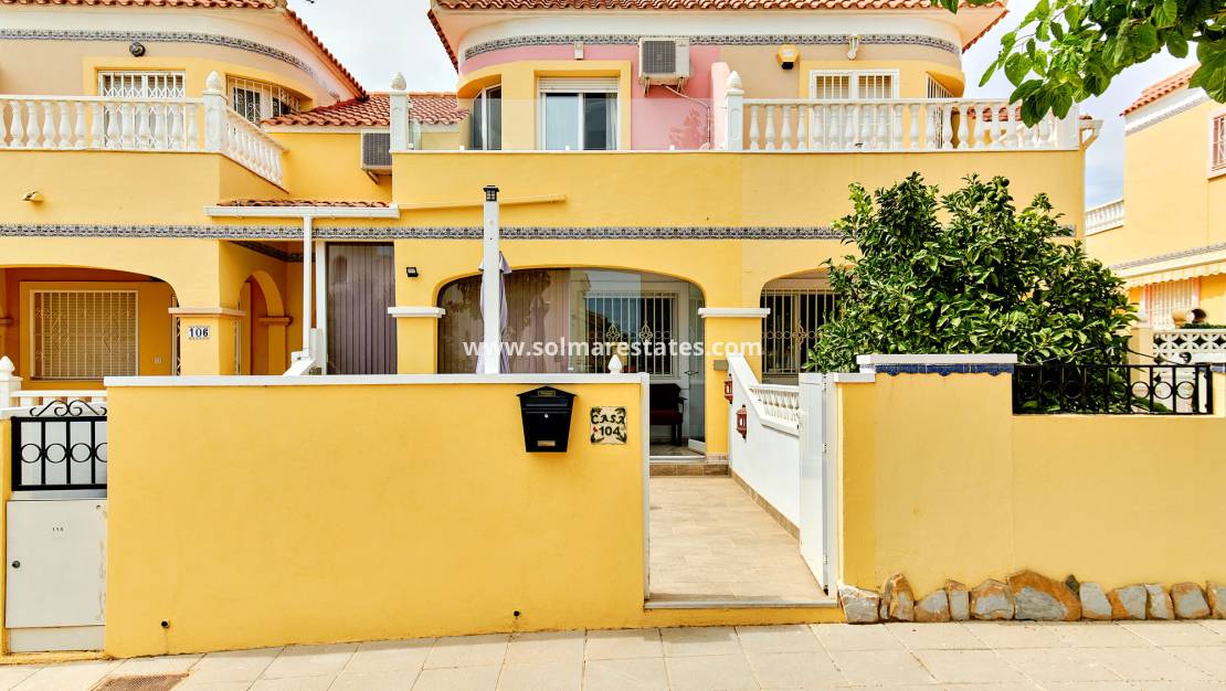 Wunderschön gestaltetes Stadthaus mit 3 Schlafzimmern, 2 Bädern und Zugang zu zwei Gemeinschaftspools. Ideal gelegen, nur wenige Gehminuten von Bars, Restaurants und zwei Supermärkten im charmanten grünen Dorf Pinar de Campoverde entfernt. Nur 10 km von den mit der Blauen Flagge ausgezeichneten Stränden von Torre de la Horadada und Mil Palmeras entfernt, bietet dieses Anwesen Komfort und Bequemlichkeit.