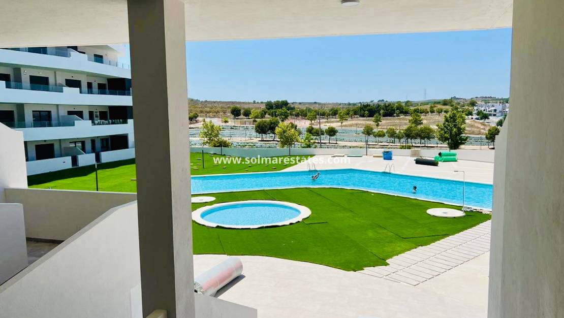 Vollständig abgeschlossene Wohnanlage mit Gemeinschaftspools für Erwachsene und Kinder, Grünflächen, Kinderspielplatz und einem Erwachsenenbereich mit Bio-Fitness-Parcours. Gelegen an der Costa Blanca in San Miguel de Salinas, in der Nähe von Golfplätzen, Stränden und Einkaufszentren.
