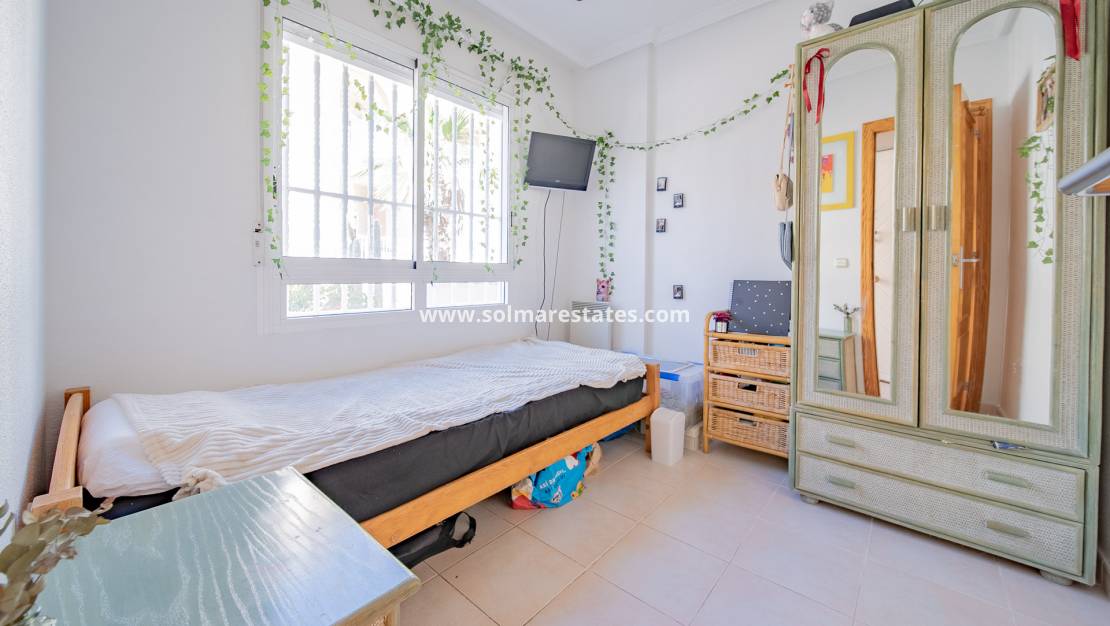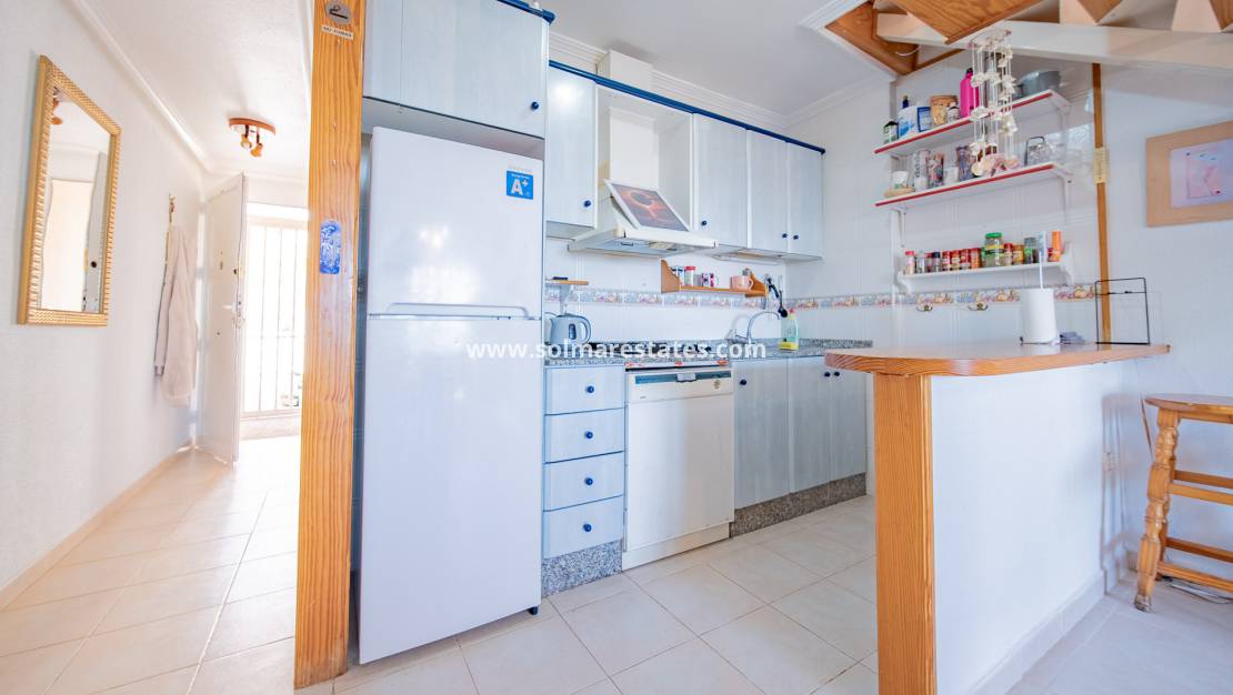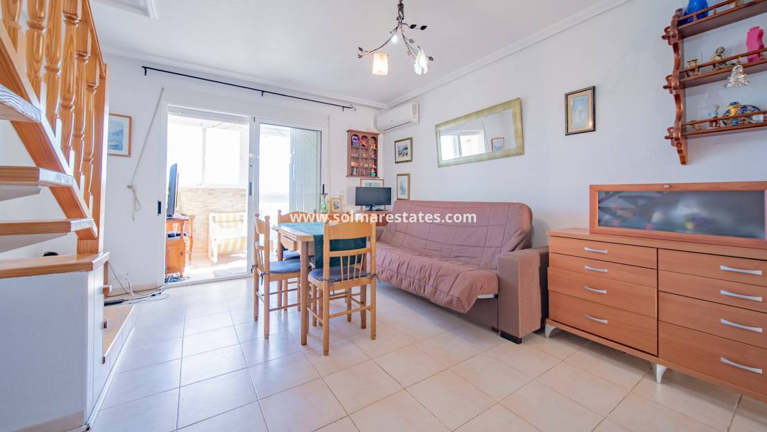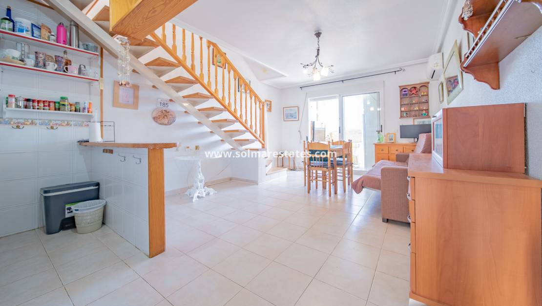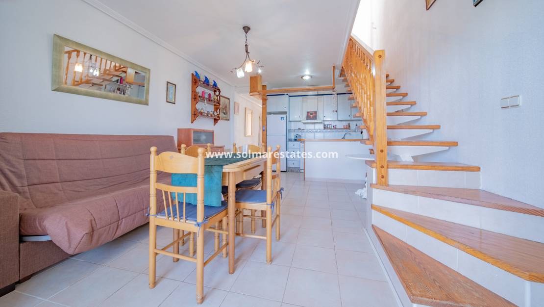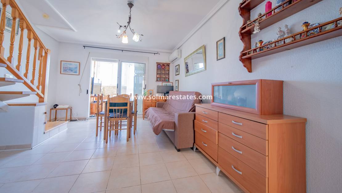 Entdecken Sie dieses wunderschöne Reihenhaus mit 2 Schlafzimmern und 2 Bädern und spektakulärem Meerblick in der begehrten Wohngegend Cabo Cervera in Torrevieja. Dieses voll möblierte Haus erstreckt sich über zwei Ebenen und bietet auf 65 m² Wohnfläche Komfort, Bequemlichkeit und einen entspannten Küsten-Lebensstil.