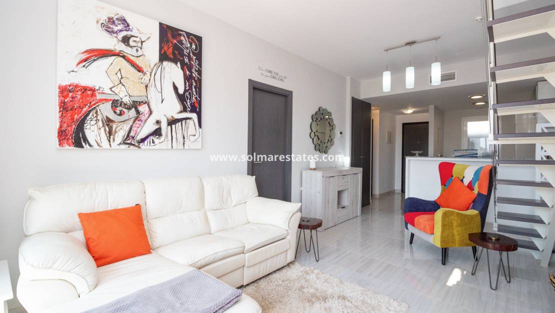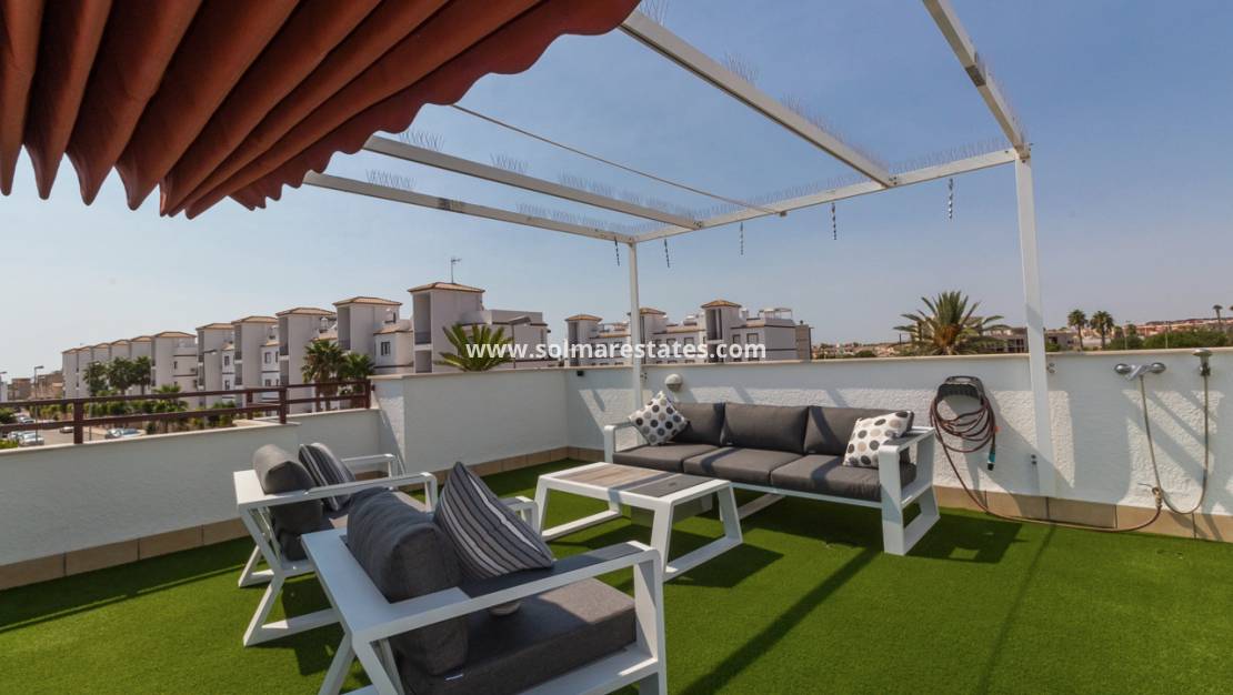 Dieses moderne und luxuriöse Penthouse befindet sich in der begehrten Wohnanlage Residencial Silene in Ciñuelica, Punta Prima, nur 1,5 km vom Sandstrand entfernt. Die 2014 erbaute und außergewöhnlich gepflegte Wohnung genießt eine sonnige Südlage.