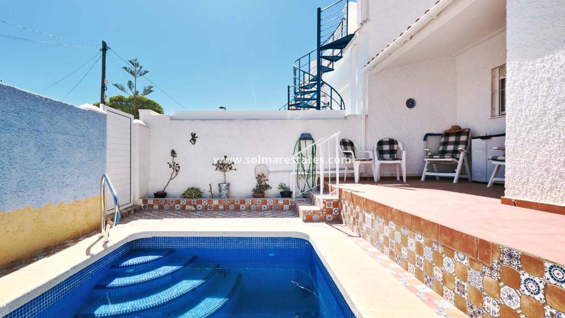 Eine wunderbare Gelegenheit, ein Reihenhaus mit 2 Schlafzimmern, 1 Badezimmer, privatem Pool und Parkplatz abseits der Straße zu erwerben. Dieses Anwesen liegt im charmanten, grünen Dorf Pinar de Campoverde , nur wenige Gehminuten von lokalen Annehmlichkeiten und nur 10 km von den atemberaubenden, mit der Blauen Flagge ausgezeichneten Stränden von Torre de la Horadada und Mil Palmeras entfernt .