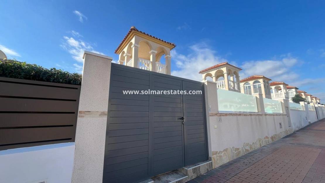 Draußen gibt es einen sonnigen, umlaufenden Garten und ein privates Solarium mit freiem Blick, ideal zum Entspannen oder für Unterhaltung. Die Villa liegt nur wenige Gehminuten von lokalen Bars, Geschäften und Restaurants entfernt. Die Strände von Guardamar sind nur 15 Minuten und der Flughafen Alicante 30 Minuten entfernt.