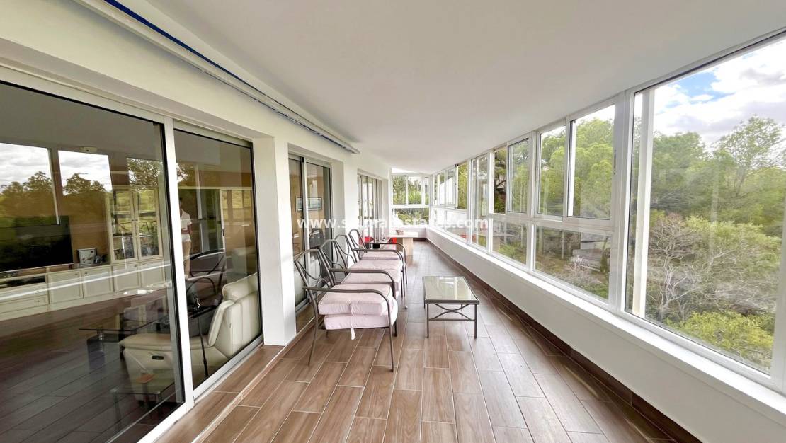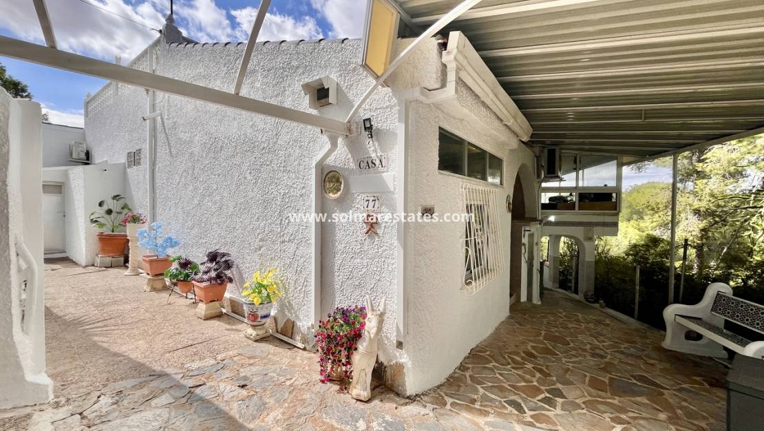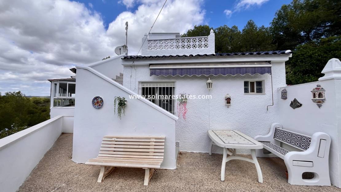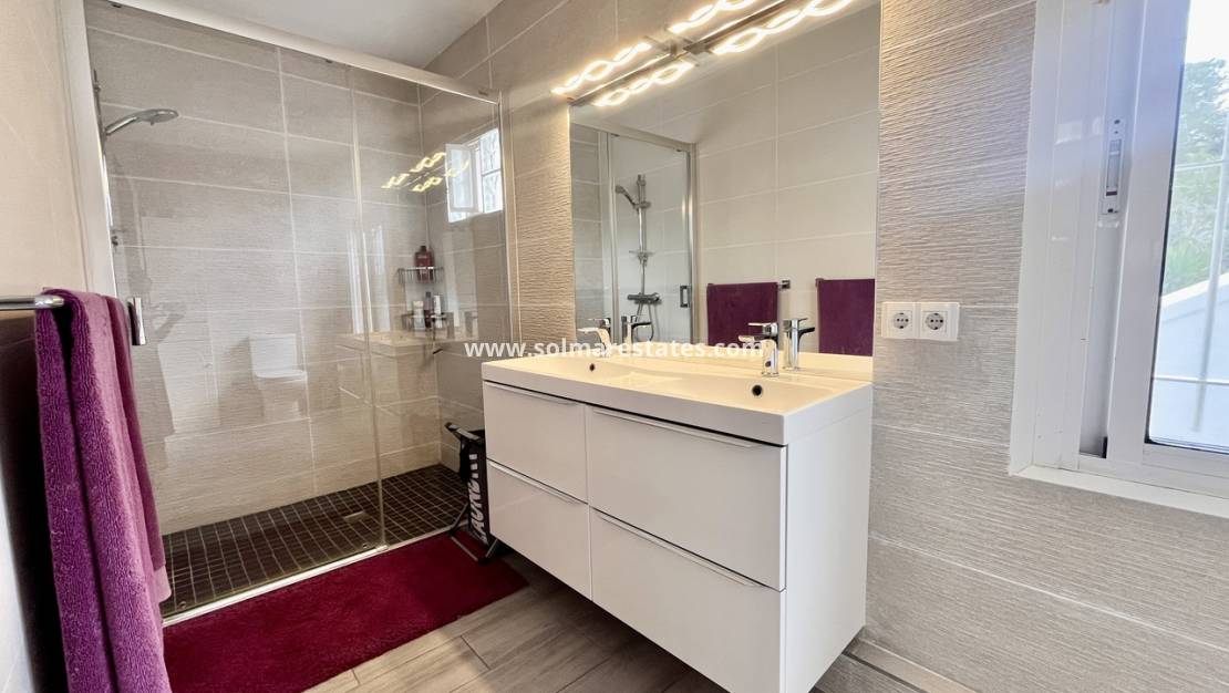 Im Herzen von Pinar de Campoverde gelegen, vereint diese freistehende Villa Platz, Komfort und eine atemberaubende Naturlandschaft. Sie verfügt über drei Schlafzimmer und drei Badezimmer, darunter eines en-suite, sowie einen geräumigen Unterbau mit eigenem Bad, ideal für Gäste oder als zusätzlichen Wohnraum. Die offene Küche geht in helle Wohnbereiche über, und der Wintergarten bietet einen Panoramablick auf die üppige Landschaft. Im Außenbereich genießen Sie eine private Sonnenterrasse und Platz für einen Pool, um die mediterrane Sonne zu genießen.