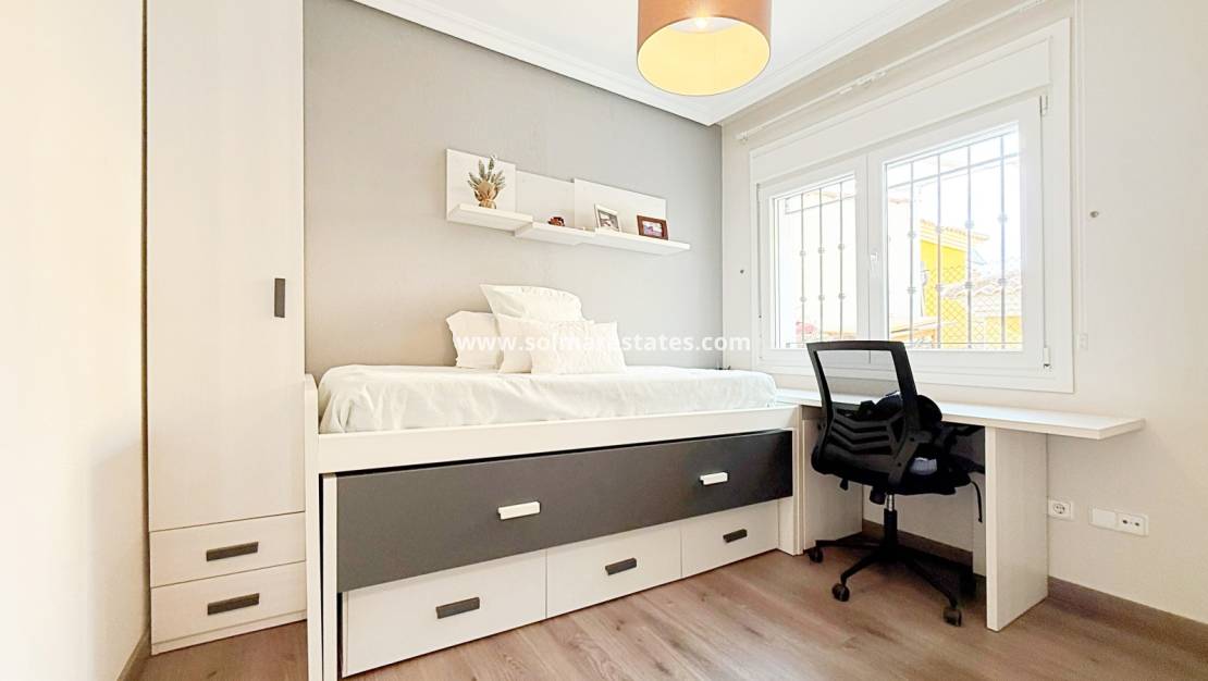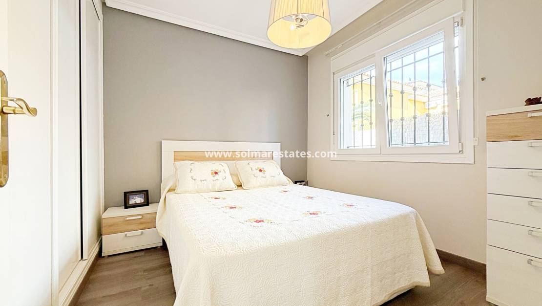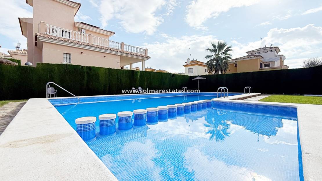Diese herrliche, freistehende Villa mit 105 m² Wohnfläche wurde komplett renoviert und erstreckt sich über zwei Etagen. Sie liegt in einer privaten Wohnanlage mit angelegten Gärten und einem Gemeinschaftspool und bietet Komfort und Stil in unmittelbarer Nähe des Strandes.