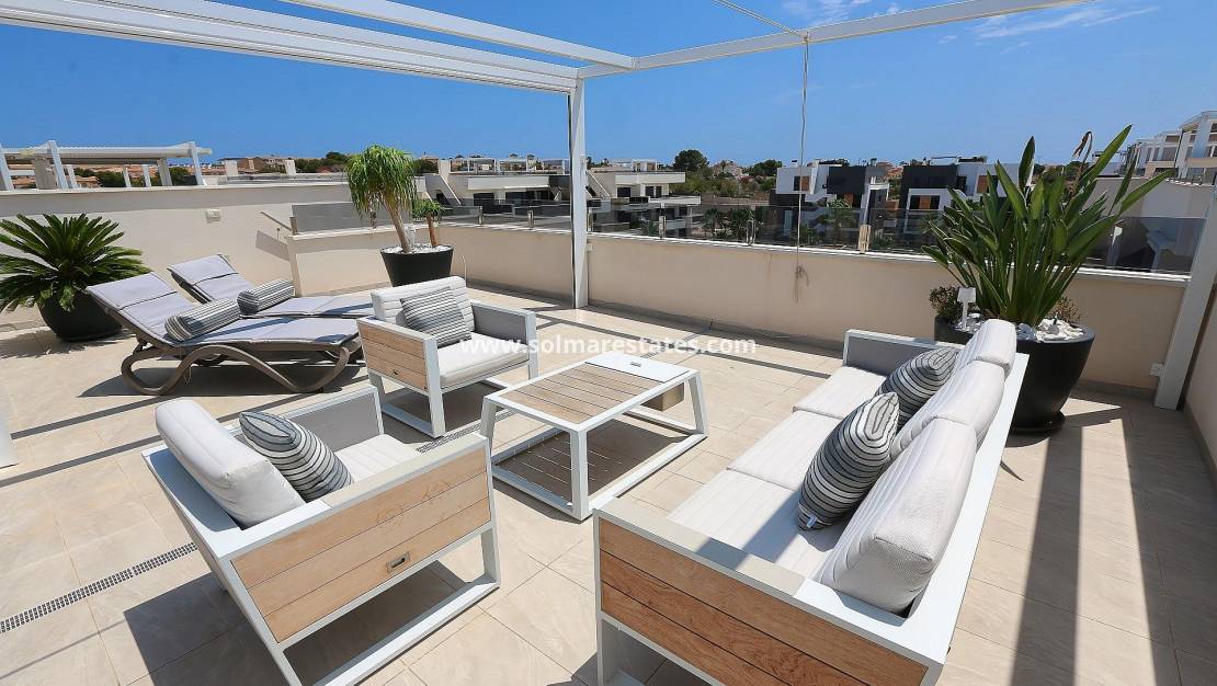 Dieses Haus liegt im modernen Komplex Amanecer IX und bietet eine private Dachterrasse , einen geräumigen Balkon und einen eigenen Whirlpool – den ultimativen Outdoor-Lifestyle an der Costa Blanca .