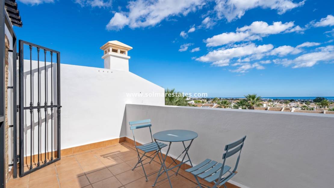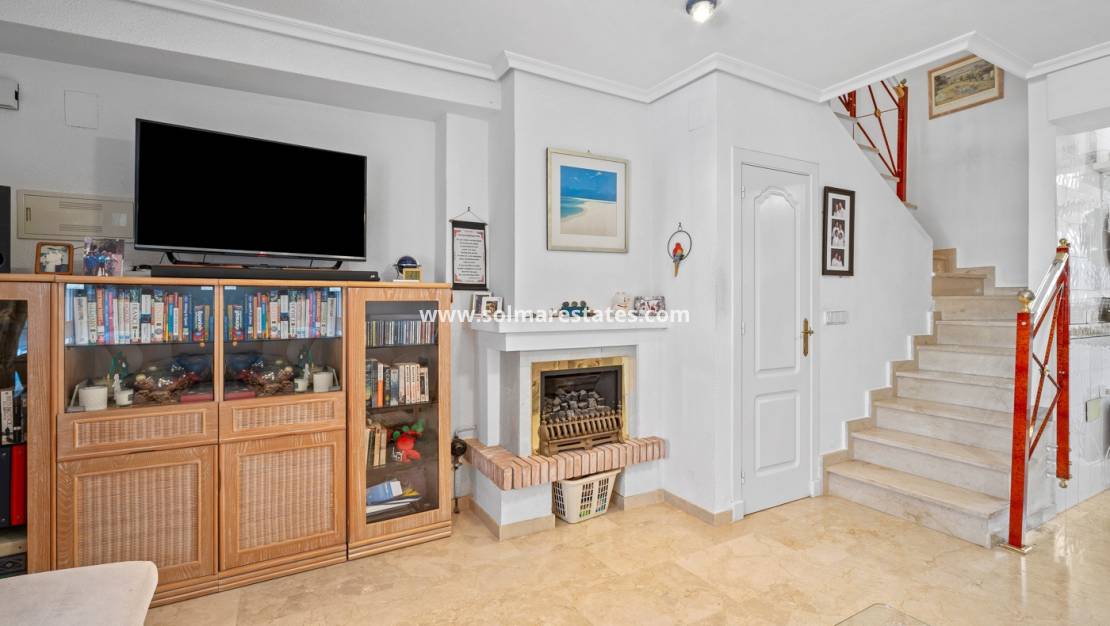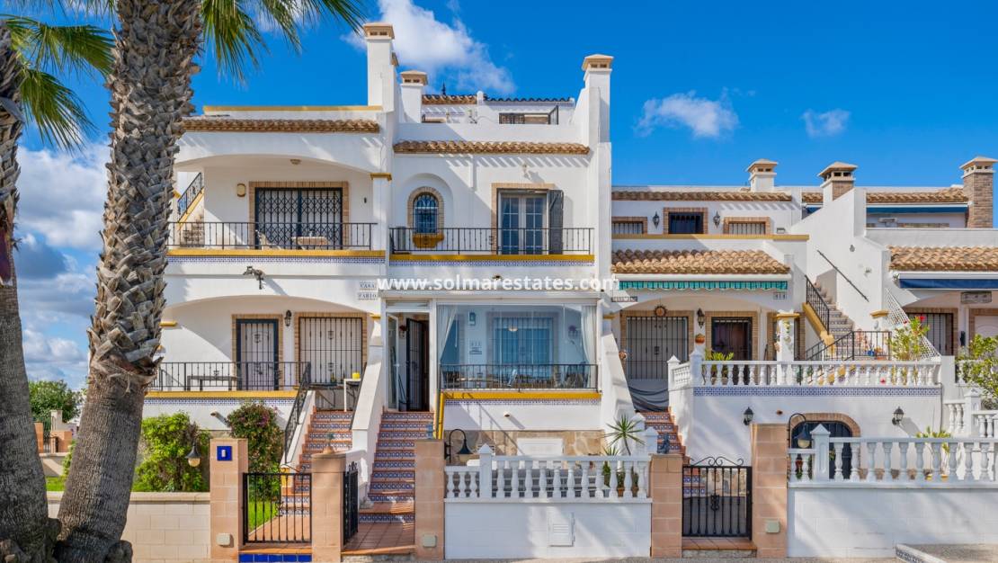 Dieses stilvolle Reihenhaus mit 3 Schlafzimmern, 2 Bädern und einem separaten Gäste-WC liegt im Herzen von Los Dolses, einem beliebten Wohngebiet zwischen Villamartín und La Zenia an der sonnigen Costa Blanca. Die Immobilie vereint Komfort, Helligkeit und eine hervorragende Lage, nur wenige Minuten von Geschäften, Restaurants, Golfplätzen und den Stränden der Orihuela Costa entfernt.