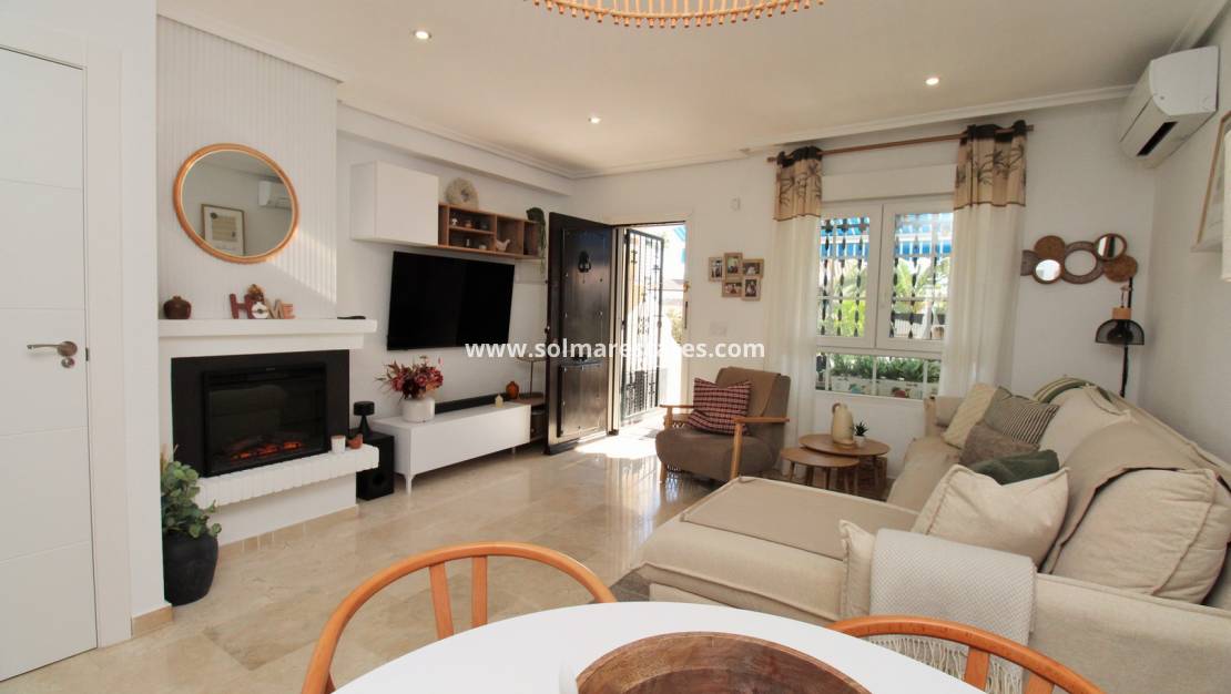Nur fünf Gehminuten von der Villamartin Plaza und dem Golfplatz entfernt, bietet dieses Haus die perfekte Kombination aus Komfort, Stil und Bequemlichkeit. Die gepflegte Wohnanlage verfügt über einen schönen Swimmingpool und angelegte Gärten, die den Bewohnern zur Verfügung stehen.