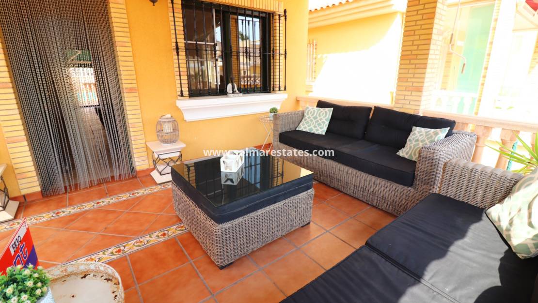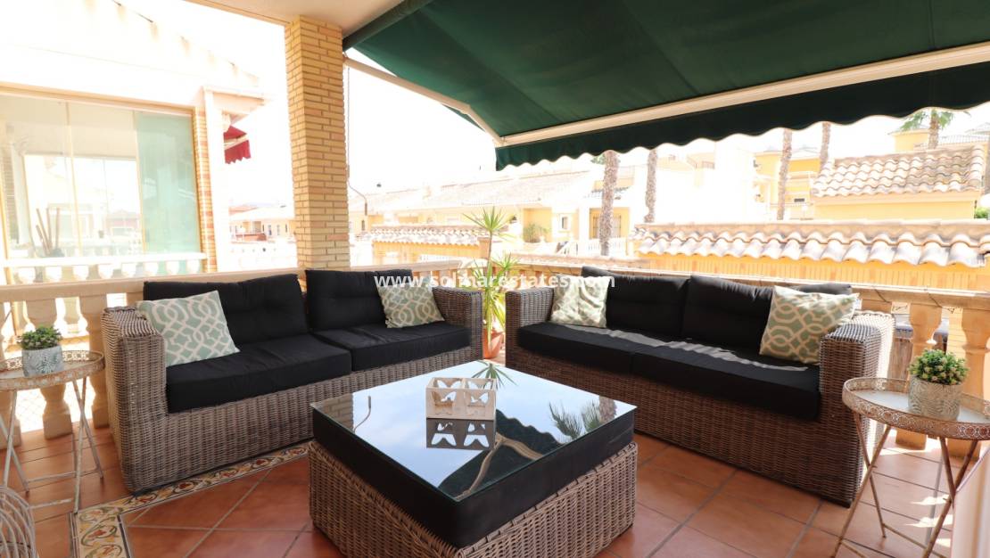 Die Sicherheit wird durch die rundum angebrachten Fenstergitter erhöht, die für ein beruhigendes Gefühl sorgen. Diese Villa bietet großzügige Wohnräume im Innen- und Außenbereich und ist somit eine ausgezeichnete Wahl für dauerhaftes Wohnen oder einen luxuriösen Urlaub an der sonnenverwöhnten Costa Blanca Süd.
