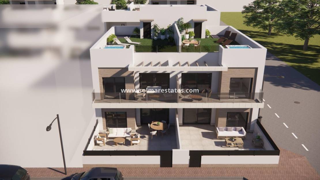 Die Wohnanlage bietet moderne Wohnungen mit 2 Schlafzimmern und 2 Badezimmern, darunter ein Hauptschlafzimmer mit eigenem Bad. Käufer können zwischen Wohnungen im Erdgeschoss mit großzügigen privaten Terrassen, die sich perfekt für das Leben im Freien eignen, oder Wohnungen im obersten Stockwerk mit Terrasse und privatem Solarium wählen, die ideal zum Sonnenbaden und Entspannen sind. Einige der Wohnungen im obersten Stockwerk sind mit dem Aufzug erreichbar, was zusätzlichen Komfort und Barrierefreiheit bietet.