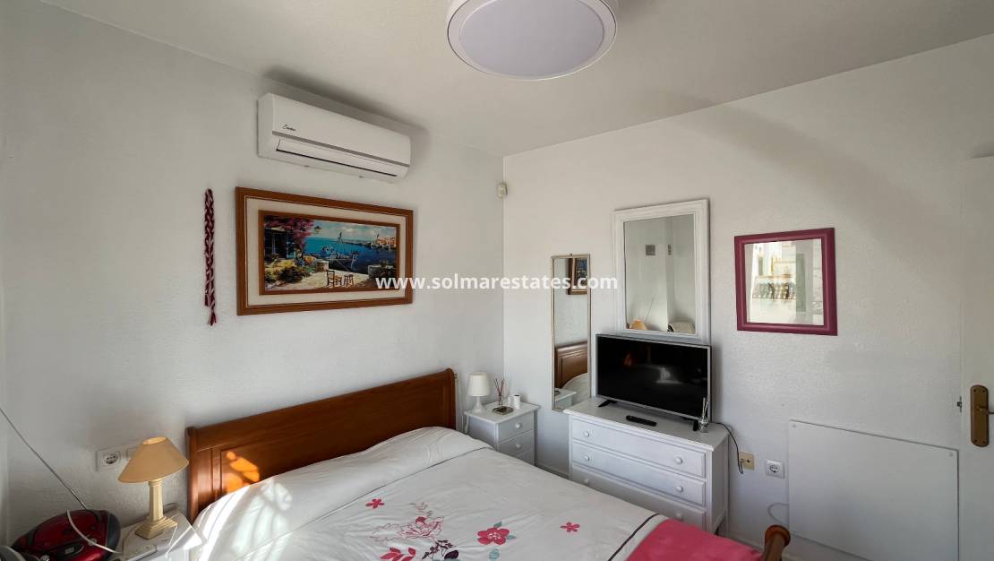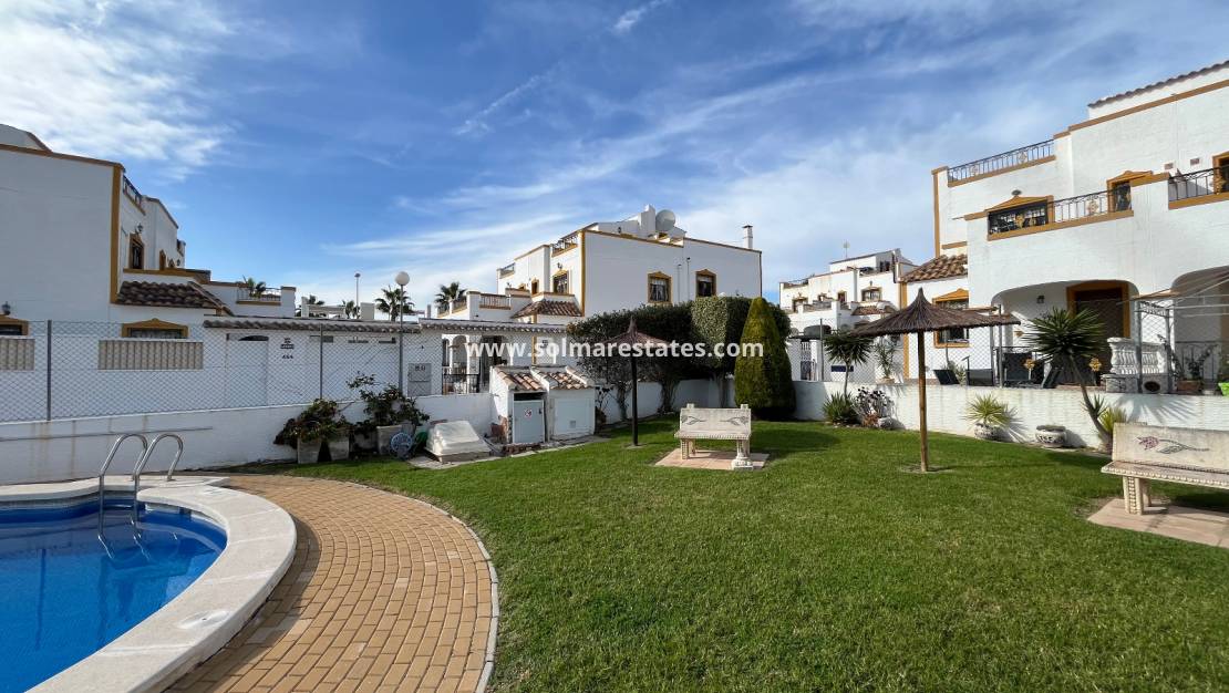 Dieses wunderschön renovierte Reihenhaus mit 3 Schlafzimmern und 2 Bädern befindet sich in idealer Lage im beliebten Viertel Entre Naranjos des Golfplatzes Vistabella. Das Anwesen wurde modernisiert und präsentiert sich in einem hervorragenden Zustand.