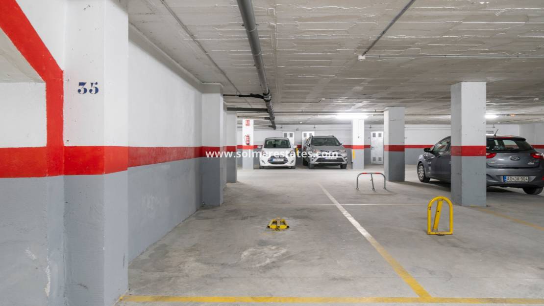 Die gepflegte Wohnanlage bietet einen Gemeinschaftspool mit gefliester Liegewiese – ideal, um das mediterrane Klima zu genießen. Zur Immobilie gehört außerdem eine Tiefgarage; ein privater Stellplatz ist im Kaufpreis inbegriffen.
