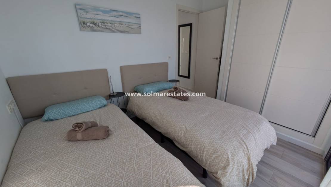 Zur Ausstattung gehören eine komplette Möblierung, eine zentrale Klimaanlage, elektrische Jalousien, Einbauschränke, ein Abstellraum, ein Stellplatz und eine sichere, abgeschlossene Wohnanlage. Mit 110 m² Wohnfläche befindet sich diese Immobilie in einem hervorragenden Zustand und ist sofort bezugsfertig.