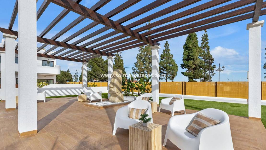 Neubau-Wohnkomplex in der Nähe von Serena Golf und Mar Menor in Los Alcazares Modernes Wohnen an der Costa Calida Entdecken Sie diesen attraktiven Neubau-Wohnkomplex in Los Alcazares, einer der beliebtesten Küstenstädte an der Costa Calida. Nur 500 m von den Stränden des Mar Menor und nur wenige Gehminuten vom Stadtzentrum entfernt, bietet diese Wohnanlage eine hervorragende Kombination aus Leben an der Küste, Golfumgebung und alltäglicher Bequemlichkeit. Los Alcázares ist bekannt für seine entspannte Atmosphäre, seine langen Promenaden, sein warmes, flaches Wasser und eine große Auswahl an Restaurants, Geschäften und Dienstleistungen, die das ganze Jahr über geöffnet sind. Moderne Apartments, die auf Komfort ausgelegt sind Die Wohnanlage besteht aus 29 modernen Wohnungen mit 2 oder 3 Schlafzimmern, die mit klaren architektonischen Linien und hochwertigen Oberflächen gestaltet sind. Käufer können zwischen Wohnungen im Erdgeschoss mit privatem Garten und Terrasse, Wohnungen in den mittleren Etagen mit großzügigen Terrassen oder Penthäusern mit privater Terrasse und Dachsolarium mit freiem Blick wählen. Viele der Immobilien bieten einen Blick auf den Serena Golfplatz und das Mar Menor und schaffen so ein ruhiges und angenehmes Wohnumfeld. Alle Wohnungen sind so konzipiert, dass sie ein Maximum an Tageslicht und Funktionalität bieten, wodurch sie sich ideal als Dauerwohnsitz, Ferienhaus oder Investitionsobjekt eignen. Hochwertige Ausstattung und Gemeinschaftsbereiche Jede Immobilie verfügt über einen privaten Parkplatz und einen Abstellraum. Die Ausstattung ist auf Komfort und Energieeffizienz ausgelegt und umfasst doppelt verglaste Fenster mit thermischer Trennung, die Vorinstallation einer Klimaanlage, ein aerothermisches System für Warmwasser, elektrische Rollläden in den Schlafzimmern und eine komplette Innen- und Außenbeleuchtung. Die Badezimmer sind komplett mit Möbeln, Spiegeln und Duschwänden ausgestattet. Die Bewohner können attraktive Gemeinschaftsbereiche mit Landschaftsgärten und einem Gemeinschaftspool genießen, die sich perfekt zum Entspannen und Genießen des mediterranen Klimas eignen. Ausgewählte Blöcke sind für zusätzlichen Komfort mit Aufzügen ausgestattet. Erstklassige Lage zwischen Golfplatz und Meer Diese Wohnanlage genießt eine privilegierte Lage neben Serena Golf, einem der renommiertesten Golfplätze der Region, und nur einen kurzen Spaziergang vom ruhigen Wasser des Mar Menor entfernt. Die Gegend ist ideal zum Schwimmen, Segeln, Paddeln und für andere Wassersportarten das ganze Jahr über. Zu den wichtigsten Entfernungen gehören die Strände von Mar Menor in 0,5 km Entfernung, Serena Golf direkt neben der Anlage, das Stadtzentrum von Los Alcazares in 2 km Entfernung, Cartagena in 22 km Entfernung und die Stadt Murcia in 40 km Entfernung. Der Flughafen Murcia Corvera ist etwa 30 km entfernt und der Flughafen Alicante etwa 90 km. Ein ideales Zuhause oder eine ideale Investitionsmöglichkeit Mit seiner ausgezeichneten Lage, seinem modernen Design und der Nähe zum Golfplatz und zum Meer bietet dieser neue Wohnkomplex in Los Alcazares eine hervorragende Gelegenheit für einen außergewöhnlichen Lebensstil an der Costa Calida. Kontaktieren Sie uns noch heute, um weitere Informationen zu erhalten oder einen privaten Besichtigungstermin zu vereinbaren und sich Ihr neues Zuhause am Mar Menor zu sichern.