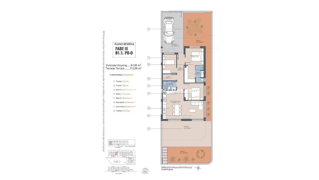 Neubau-Wohnkomplex in der Nähe von Serena Golf und Mar Menor in Los Alcazares Modernes Wohnen an der Costa Calida Entdecken Sie diesen attraktiven Neubau-Wohnkomplex in Los Alcazares, einer der beliebtesten Küstenstädte an der Costa Calida. Nur 500 m von den Stränden des Mar Menor und nur wenige Gehminuten vom Stadtzentrum entfernt, bietet diese Wohnanlage eine hervorragende Kombination aus Leben an der Küste, Golfumgebung und alltäglicher Bequemlichkeit. Los Alcázares ist bekannt für seine entspannte Atmosphäre, seine langen Promenaden, sein warmes, flaches Wasser und eine große Auswahl an Restaurants, Geschäften und Dienstleistungen, die das ganze Jahr über geöffnet sind. Moderne Apartments, die auf Komfort ausgelegt sind Die Wohnanlage besteht aus 29 modernen Wohnungen mit 2 oder 3 Schlafzimmern, die mit klaren architektonischen Linien und hochwertigen Oberflächen gestaltet sind. Käufer können zwischen Wohnungen im Erdgeschoss mit privatem Garten und Terrasse, Wohnungen in den mittleren Etagen mit großzügigen Terrassen oder Penthäusern mit privater Terrasse und Dachsolarium mit freiem Blick wählen. Viele der Immobilien bieten einen Blick auf den Serena Golfplatz und das Mar Menor und schaffen so ein ruhiges und angenehmes Wohnumfeld. Alle Wohnungen sind so konzipiert, dass sie ein Maximum an Tageslicht und Funktionalität bieten, wodurch sie sich ideal als Dauerwohnsitz, Ferienhaus oder Investitionsobjekt eignen. Hochwertige Ausstattung und Gemeinschaftsbereiche Jede Immobilie verfügt über einen privaten Parkplatz und einen Abstellraum. Die Ausstattung ist auf Komfort und Energieeffizienz ausgelegt und umfasst doppelt verglaste Fenster mit thermischer Trennung, die Vorinstallation einer Klimaanlage, ein aerothermisches System für Warmwasser, elektrische Rollläden in den Schlafzimmern und eine komplette Innen- und Außenbeleuchtung. Die Badezimmer sind komplett mit Möbeln, Spiegeln und Duschwänden ausgestattet. Die Bewohner können attraktive Gemeinschaftsbereiche mit Landschaftsgärten und einem Gemeinschaftspool genießen, die sich perfekt zum Entspannen und Genießen des mediterranen Klimas eignen. Ausgewählte Blöcke sind für zusätzlichen Komfort mit Aufzügen ausgestattet. Erstklassige Lage zwischen Golfplatz und Meer Diese Wohnanlage genießt eine privilegierte Lage neben Serena Golf, einem der renommiertesten Golfplätze der Region, und nur einen kurzen Spaziergang vom ruhigen Wasser des Mar Menor entfernt. Die Gegend ist ideal zum Schwimmen, Segeln, Paddeln und für andere Wassersportarten das ganze Jahr über. Zu den wichtigsten Entfernungen gehören die Strände von Mar Menor in 0,5 km Entfernung, Serena Golf direkt neben der Anlage, das Stadtzentrum von Los Alcazares in 2 km Entfernung, Cartagena in 22 km Entfernung und die Stadt Murcia in 40 km Entfernung. Der Flughafen Murcia Corvera ist etwa 30 km entfernt und der Flughafen Alicante etwa 90 km. Ein ideales Zuhause oder eine ideale Investitionsmöglichkeit Mit seiner ausgezeichneten Lage, seinem modernen Design und der Nähe zum Golfplatz und zum Meer bietet dieser neue Wohnkomplex in Los Alcazares eine hervorragende Gelegenheit für einen außergewöhnlichen Lebensstil an der Costa Calida. Kontaktieren Sie uns noch heute, um weitere Informationen zu erhalten oder einen privaten Besichtigungstermin zu vereinbaren und sich Ihr neues Zuhause am Mar Menor zu sichern.