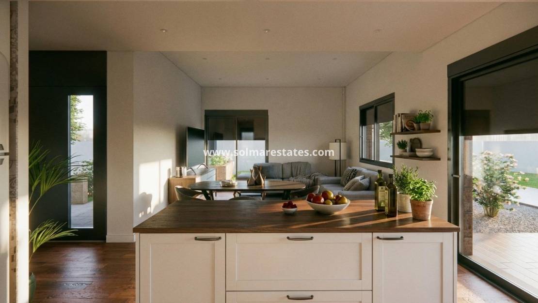 Neubau-Villa mit privatem Pool in Vistabella, Jacarilla Exklusive Neubau-Villa in natürlicher Umgebung mit Golfplatz Diese Neubau-Villa im Selbstvermarktungsregime befindet sich in der ruhigen Gegend von Vistabella, innerhalb der Gemeinde Jacarilla. In einer natürlichen Umgebung zwischen dem Golfplatz Vistabella und dem Stausee La Pedrera gelegen, bietet diese Immobilie Privatsphäre, freie Aussicht und einen entspannten mediterranen Lebensstil. Die Gegend ist ideal für diejenigen, die Ruhe suchen und gleichzeitig in der Nähe der Küste, von Golfplätzen und alltäglichen Dienstleistungen bleiben möchten. Vistabella ist eine bekannte Wohngegend, die dank ihres Golfplatzes, der lokalen Restaurants und der Nähe zu Orihuela Costa und Torrevieja bei internationalen Käufern sehr beliebt ist. Jacarilla hat seinen traditionellen spanischen Charme bewahrt und bietet das ganze Jahr über lokale Geschäfte, Dienstleistungen und eine freundliche Atmosphäre. Modernes einstöckiges Layout mit großzügigen Außenbereichen Die Villa erstreckt sich über eine Etage und wurde so konzipiert, dass sie Komfort, Funktionalität und natürliches Licht vereint. Sie verfügt über 3 Schlafzimmer und 2 Badezimmer, darunter ein Hauptschlafzimmer mit eigenem Bad. Der offene Wohn- und Essbereich geht nahtlos in die moderne Küche über und schafft einen hellen und einladenden Wohnraum. Eine überdachte Terrasse von 22 m² bietet direkten Zugang zum privaten Garten, wo ein privater Swimmingpool und Landschaftsbereiche zum Genießen des Lebens im Freien einladen. Das großzügige 750 m² große Grundstück umfasst auch einen Parkplatz für zwei Fahrzeuge. Privates Solarium mit freiem Blick Eines der Highlights dieser Villa ist das beeindruckende private Solarium von 120 m², das über eine Außentreppe zugänglich ist. Von hier aus genießen Sie einen freien Panoramablick auf die umliegende Landschaft, ideal zum Sonnenbaden, Unterhalten oder Entspannen während des ganzen Jahres. Hochwertige Ausstattung und energieeffiziente Merkmale Die Villa wurde mit hochwertigen Materialien und modernen Ausstattungsmerkmalen gebaut, um Komfort und Effizienz zu gewährleisten. Zur Ausstattung gehören eine verstärkte Sicherheitseingangstür, ein aerothermisches System für die Warmwasserbereitung, elektrische Jalousien im Wohnzimmer und in den Schlafzimmern sowie die Vorinstallation einer Klimaanlage mit Luftkanälen. Diese Elemente bilden die ideale Grundlage für ein komfortables und energieeffizientes Zuhause. Ausgezeichnete Lage in der Nähe von Golf, Natur und Küste Der Golfplatz Vistabella liegt etwa 2 km entfernt, während der Stausee La Pedrera nur 1,5 km von der Immobilie entfernt ist, ideal für Naturliebhaber und Outdoor-Aktivitäten. Die Strände von Orihuela Costa sind etwa 15 km entfernt. Der internationale Flughafen Alicante ist etwa 55 km entfernt und bietet gute Verbindungen zu den wichtigsten europäischen Zielen. Mehrere weitere Golfplätze und Einkaufsmöglichkeiten sind innerhalb von 10 bis 15 km erreichbar. Eine einzigartige Gelegenheit an der Costa Blanca Diese neu gebaute Villa in Vistabella eignet sich perfekt als Dauerwohnsitz, Ferienhaus oder Investitionsmöglichkeit in einer begehrten Lage. Kontaktieren Sie uns noch heute, um weitere Informationen zu erhalten und sich Ihr neues Zuhause im Herzen der Costa Blanca zu sichern.