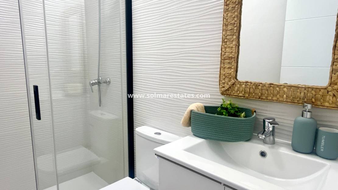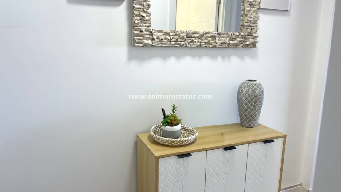 Der Strand Cala Piteras ist nur wenige Schritte entfernt und bekannt für sein ruhiges Wasser und die malerischen Küstenwege, die zur Promenade von Torrevieja führen. Supermärkte, Cafés, öffentliche Verkehrsmittel und andere Geschäfte des täglichen Bedarfs befinden sich in unmittelbarer Nähe und ermöglichen ein unkompliziertes Leben ohne Auto.