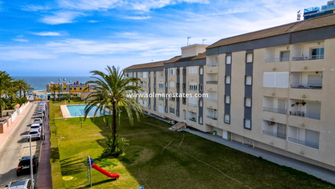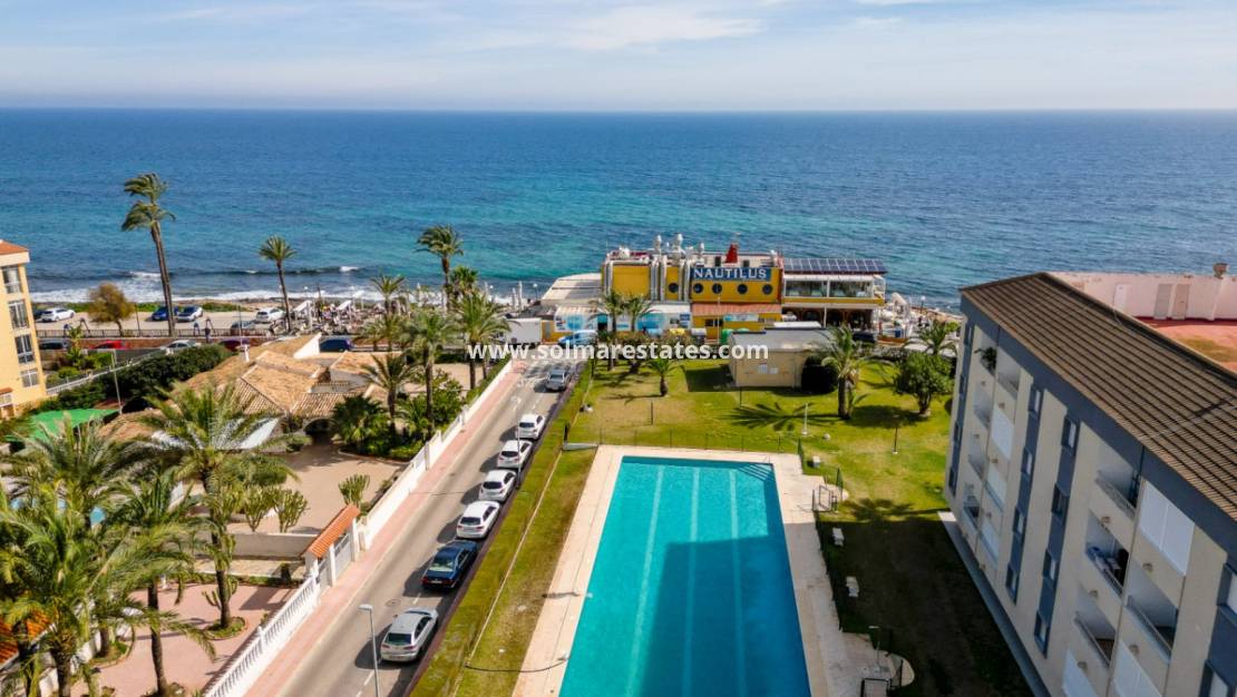 Dieses modernisierte Apartment mit drei Schlafzimmern befindet sich im Edificio Nautilus II, einer der bekanntesten Wohnanlagen an der Küste von Punta Prima, nur wenige Gehminuten vom Strand Cala Piteras und dem beliebten Restaurant Nautilus entfernt. Die Lage bietet die ideale Kombination aus Strandleben und alltäglichen Annehmlichkeiten in einer etablierten Gegend der Orihuela Costa.