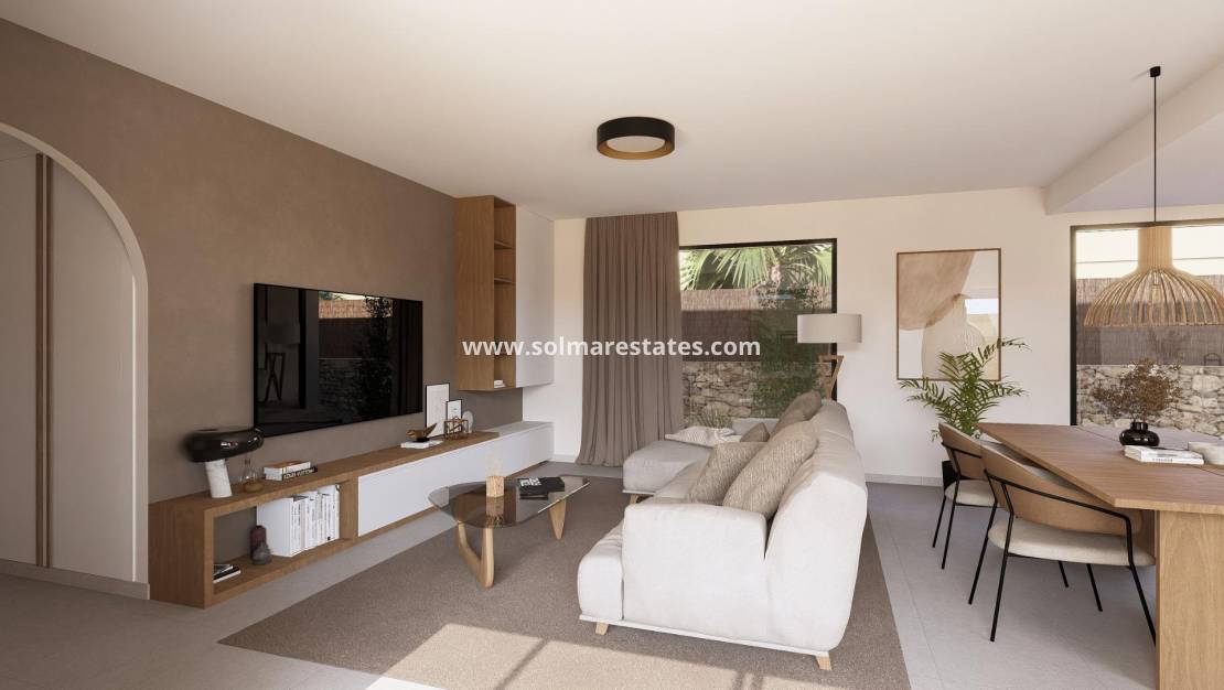 Moderne einstöckige Villen im Altaona Golf Resort Murcia Erstklassige Lage im Golf Resort in der Nähe der Stadt Murcia Entdecken Sie diese exklusive Kollektion neu gebauter freistehender Villen im renommierten Altaona Golf Resort in Murcia. In einer sicheren und ruhigen Umgebung, umgeben von Natur und einem 18-Loch-Golfplatz, bietet diese Wohnanlage die perfekte Balance zwischen Ruhe und Erreichbarkeit. Altaona Golf liegt nur 15 km vom Stadtzentrum von Murcia entfernt, wo Sie Einkaufszentren, Restaurants, Schulen und medizinische Einrichtungen finden, während die Strände der Costa Calida nur 20 km entfernt sind. Der Flughafen Murcia Corvera liegt günstig 15 km vom Resort entfernt, was diesen Ort ideal sowohl für den dauerhaften Wohnsitz als auch für Ferienhäuser macht. Modernes einstöckiges Design mit privatem Garten und Pool Diese eleganten Villen sind auf einer Ebene konzipiert, um maximalen Komfort und Funktionalität zu bieten. Käufer können zwischen 2, 3 oder 4 Schlafzimmern und 2 oder 3 Badezimmern sowie einer Gästetoilette wählen. Jedes Haus verfügt über eine offene Küche und einen Wohnbereich, der nahtlos in die Außenterrasse und den privaten Landschaftsgarten mit Swimmingpool übergeht. Ein privater Parkplatz ist im Grundstück enthalten und sorgt für Komfort und Privatsphäre. Energieeffiziente Häuser mit hochwertiger Ausstattung Alle Villen verfügen über ein Energiezertifikat der Klasse A, das eine hervorragende Energieeffizienz und niedrige Betriebskosten gewährleistet. Die Immobilien sind mit einer Klimaanlage mit Wärmepumpe im gesamten Haus (außer in den Badezimmern) und einer elektrischen Fußbodenheizung im Wohnzimmer und in den Badezimmern mit unabhängigen Thermostaten für jeden Bereich ausgestattet. Ein mechanisches Belüftungssystem sorgt für frische Luft in Küche, Badezimmern, Waschküche und Gästetoilette und verbessert so den Komfort im Innenbereich. Die Küche ist mit einer Dunstabzugshaube und einem elektrischen Induktionskochfeld ausgestattet. LED-Beleuchtung ist im Wohnzimmer, im Flur und in den Außenbereichen vorhanden, während die übrigen Räume für eine individuelle Beleuchtung durch den Eigentümer vorbereitet sind. Die Schlafzimmer sind mit USB-Ladestationen für zusätzlichen Komfort ausgestattet. Smart-Home-Technologie und sichere Wohnanlage Jede Villa verfügt über eine Video-Gegensprechanlage, eine Smart-Home-Automatisierung mit zwei intelligenten Schaltern und einen motorisierten Zugang zur bewachten Wohnanlage. Der private Garten ist mit einem Tropfbewässerungssystem und einem einladenden privaten Swimmingpool ausgestattet, ideal, um das ganze Jahr über das mediterrane Klima zu genießen. Entfernungen zu wichtigen Sehenswürdigkeiten Golfplatz Altaona 0,1 km Stadtzentrum von Murcia 15 km Strände von Los Alcazares und Mar Menor 20 km Flughafen Murcia Corvera 15 km Einkaufszentren und Dienstleistungen 10 km Hacienda Riquelme Golf Resort 12 km Ihr neuer Lebensstil in Altaona Golf erwartet Sie Genießen Sie Golf, Natur, Sicherheit und modernen Komfort in einem der attraktivsten Resorts der Region Murcia. Kontaktieren Sie uns noch heute, um weitere Informationen zu erhalten oder einen Besichtigungstermin für diese wunderschönen Neubauvillen zu vereinbaren.