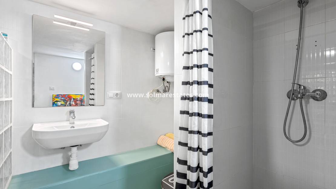 Im Erdgeschoss führt eine einladende, geschlossene Veranda in ein helles Wohnzimmer. Auf dieser Ebene befinden sich außerdem ein Schlafzimmer mit Ankleidezimmer, ein Badezimmer mit Dusche und eine voll ausgestattete, separate Küche.