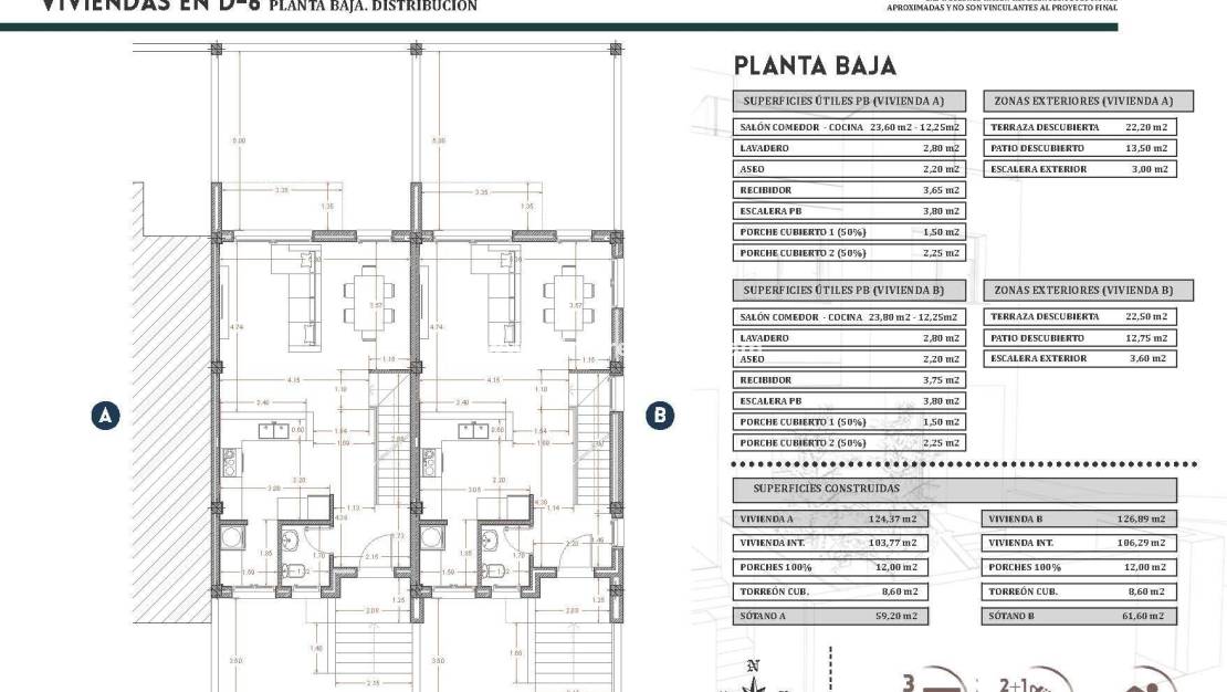 Neubau-Reihenhäuser mit Solarium und Tiefgarage in Bigastro Vega Baja Exklusive Wohnanlage mit nur zwei modernen Häusern Dieses Boutique-Neubauprojekt besteht aus nur zwei Reihenhäusern in der ruhigen Stadt Bigastro, die in der Region Vega Baja an der Costa Blanca Süd liegt. Diese Häuser wurden mit einem praktischen Grundriss über mehrere Ebenen hinweg entworfen und verbinden Platz, Komfort und Energieeffizienz in einer gut angebundenen Wohngegend. Bigastro ist bekannt für seine ruhige Atmosphäre, seinen traditionellen spanischen Charakter und die hervorragende Anbindung an nahegelegene Städte, Strände und Dienstleistungen. Es bietet einen entspannten Lebensstil und liegt gleichzeitig in der Nähe aller Annehmlichkeiten des täglichen Lebens, was es sowohl für den dauerhaften Wohnsitz als auch für den Urlaub ideal macht. Großzügiger Grundriss auf vier Ebenen Jede Immobilie erstreckt sich über Keller, Erdgeschoss, Obergeschoss und Dachsolarium und bietet großzügige Innen- und Außenwohnbereiche. Das 59 m² große Untergeschoss ist als private Garage mit motorisiertem Zugangstor konzipiert und bietet sicheren Parkplatz und zusätzlichen Stauraum. Im Erdgeschoss finden Sie ein helles, offenes Wohnzimmer mit Küche, eine Gästetoilette und zwei Terrassen, eine auf der Vorder- und eine auf der Rückseite, die den ganzen Tag über für natürliches Licht und Belüftung sorgen. Im ersten Stock befinden sich 3 Schlafzimmer und 2 Badezimmer, eines davon en suite, sowie eine zusätzliche Terrasse. Auf der obersten Etage bietet ein privates Dachsolarium von ca. 40 m² den perfekten Raum zum Entspannen, Sonnenbaden oder zum Einrichten eines Chill-out-Bereichs im Freien. Hochwertige Ausstattung und energieeffiziente Systeme Diese Häuser sind mit modernen Materialien und durchdachten Details gebaut, um Komfort und Effizienz zu gewährleisten, darunter Verstärkte Sicherheitseingangstür Aerothermisches System für Warmwasser Photovoltaik-Solarmodul Elektrische Rollläden im Wohnzimmer und in den Schlafzimmern Vorinstallation für eine Klimaanlage mit Luftkanälen Motorisierte Garagentür Die Bewohner haben außerdem Zugang zum Gemeinschaftspool innerhalb der Urbanisation, was einen zusätzlichen Mehrwert für Freizeit und Entspannung darstellt. Gute Verkehrsanbindung in der Nähe von Stränden und Dienstleistungen Stadtzentrum von Bigastro 0,5 km Stadt Orihuela 5 km Strände von Guardamar del Segura 15 km Einkaufszentrum Zenia Boulevard 20 km Krankenhaus Vega Baja 10 km Internationaler Flughafen Alicante 48 km Mehrere Golfplätze im Umkreis von 15 km Die nahe gelegene Autobahn AP 7 bietet eine schnelle Anbindung an Alicante, Murcia und die umliegenden Küstenstädte. Eine ausgezeichnete Gelegenheit in einer wachsenden Wohngegend Mit lokalen Geschäften, Schulen, Sportanlagen, Parks und Restaurants wird Bigastro sowohl bei nationalen als auch bei internationalen Käufern, die Lebensqualität und gute Verkehrsanbindung suchen, immer beliebter. Kontaktieren Sie uns noch heute, um weitere Informationen zu erhalten oder einen Besichtigungstermin für diese exklusiven Neubau-Reihenhäuser in Bigastro zu vereinbaren.