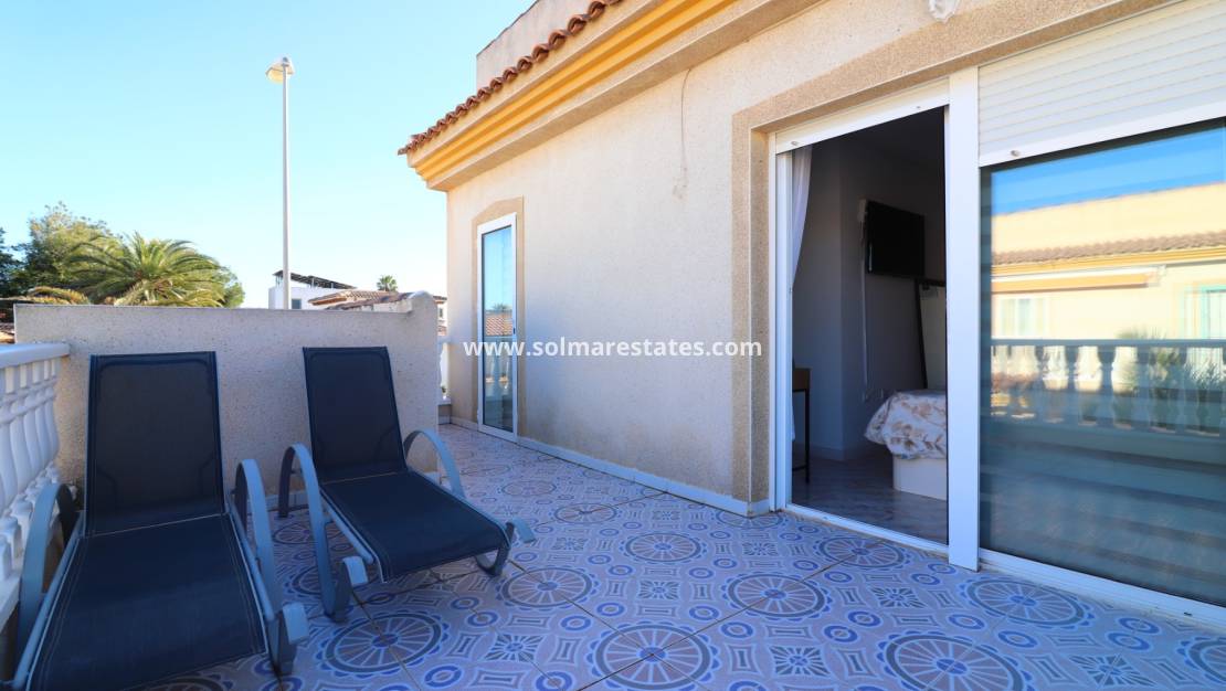 Diese freistehende Villa mit 3 Schlafzimmern und 2 Bädern in Ostlage befindet sich in einem etablierten Wohngebiet von Ciudad Quesada , nur 15 Gehminuten von Cafés, Bars, Restaurants, der Hauptstraße und dem nächsten Supermarkt entfernt. Der renommierte Golfplatz La Marquesa ist in nur 5 Fahrminuten erreichbar, und die wunderschönen Strände der südlichen Costa Blanca sind etwa 15 Minuten entfernt.