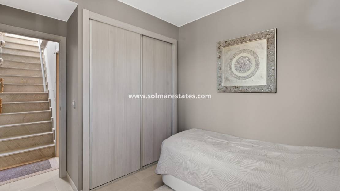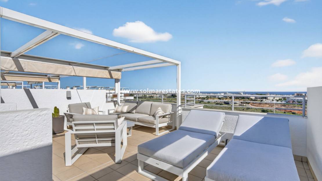 Ein besonderes Highlight ist die private Dachterrasse mit Panoramablick auf das Mittelmeer. Dieser großzügige Bereich eignet sich perfekt zum Sonnenbaden, zum Empfangen von Gästen oder einfach zum Genießen der ganzjährigen Sonne und der Meeresbrise.