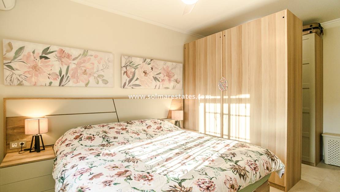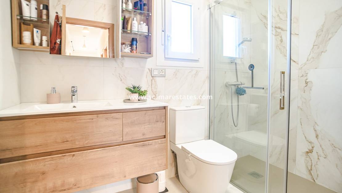 Das Haus bietet drei geräumige Schlafzimmer und zwei stilvolle Badezimmer, die alle mit Blick auf Komfort und Eleganz gestaltet wurden. Zentralheizung und Klimaanlage sorgen zu jeder Jahreszeit für ein angenehmes Raumklima und machen die Immobilie somit ideal für ganzjähriges Wohnen.