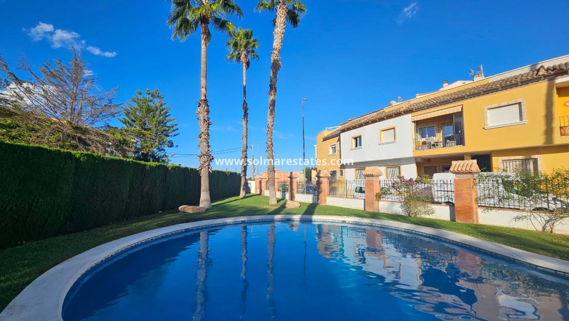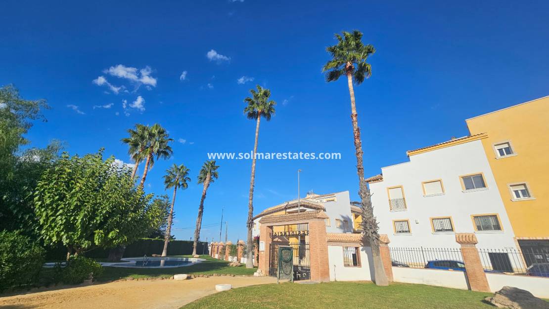 Dieses stilvolle Reihenhaus befindet sich in der sicheren, umzäunten Wohnanlage Residencial Villa Sol in Catral und bietet modernes Wohnen mit großzügigen Räumlichkeiten im Innen- und Außenbereich.