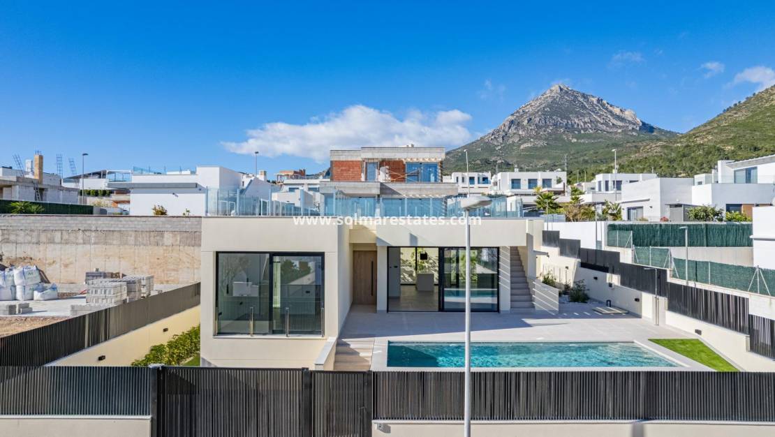 Bezugsfertige Neubauvilla mit Meerblick in La Alberca Polop Luxuriöse moderne Villa in natürlicher Berglandschaft Diese bezugsfertige, moderne Villa befindet sich in La Alberca, einer ruhigen Wohngegend von Polop, umgeben von Wald und Bergen. Dank ihrer erhöhten Lage bietet die Immobilie einen Panoramablick auf das Mittelmeer, die Berge und das historische Stadtzentrum von Polop. Die Villa bietet Privatsphäre, Ruhe und eine hervorragende Anbindung an die Küste und die umliegenden Städte. Polop ist ein charmantes Dorf in der Region Marina Baixa an der Costa Blanca, das für seinen traditionellen Charakter und seine natürliche Umgebung bekannt ist. Die Immobilie liegt in der Nähe aller Dienstleistungen in La Nucia, darunter Geschäfte, Restaurants, Sportzentren und Schulen, während die Strände und lebhaften Küstenstädte nur eine kurze Autofahrt entfernt sind. Großzügiger Grundriss über Hauptgeschoss, Keller und Solarium Die Villa verteilt sich auf ein Hauptgeschoss, ein Untergeschoss und ein Dachsolarium und bietet großzügigen Wohnraum und Flexibilität. Im Hauptgeschoss führt eine einladende Eingangshalle mit Einbauschrank zu zwei Schlafzimmern mit eigenem Bad, darunter eine Master-Suite mit hochschiebbaren Fenstertüren, die sich zu einem Juliette-Balkon und einer Terrasse öffnen. Der offene Wohn- und Essbereich ist nahtlos mit einer überdachten Pergola-Terrasse und einem privaten Salzwasser-Swimmingpool verbunden. Das Untergeschoss verfügt über zwei weitere Schlafzimmer mit eigenem Bad und großen Fenstern, ein flexibles Spielzimmer oder Kinozimmer mit Wasser- und Stromanschlüssen für einen Barbereich, einen voll ausgestatteten Waschraum mit Haier-Geräten und zwei technische Lagerräume. Das Solarium auf dem Dach bietet einen weitläufigen Außenbereich mit Panoramablick auf das Meer und ist für die zukünftige Installation von Sonnenkollektoren vorbereitet. Eine Außenküche, mehrere Abstellräume und ein mediterran gestalteter Garten mit automatischer Bewässerung vervollständigen den Außenbereich. Hochwertige Ausstattung und Energieeffizienz Diese Villa zeichnet sich durch ihre hochwertige Ausstattung und moderne Installationen aus, darunter: Zentrale Kücheninsel mit integrierten BOSCH-Geräten Naturstein-Arbeitsplatten im Innen- und Außenbereich Vorinstallation für Fußbodenheizung Aerothermisches Klimatisierungssystem von Mitsubishi Energieeffizienzklasse A Vorinstallation für Smart-Home-System Salzwasser-Swimmingpool mit optionaler Heizung Privater Parkplatz für zwei Fahrzeuge Große Fenster mit Sonnenschutzglas maximieren das natürliche Licht und sorgen gleichzeitig für Komfort und Sicherheit. Ausgezeichnete Lage und Entfernungen Zentrum von Polop 2 km La Nucia 4 km Benidorm 12 km Altea 10 km Strände 10 km Villaitana Golf 14 km Flughafen Alicante 65 km Sichern Sie sich Ihr Traumhaus in Polop Diese außergewöhnliche, bezugsfertige Villa vereint Privatsphäre, Design und Panoramablick in einer der attraktivsten Regionen im Landesinneren der Costa Blanca. Kontaktieren Sie uns noch heute, um einen privaten Besichtigungstermin zu vereinbaren und diese Luxusvilla in La Alberca Polop zu Ihrem neuen Zuhause zu machen.