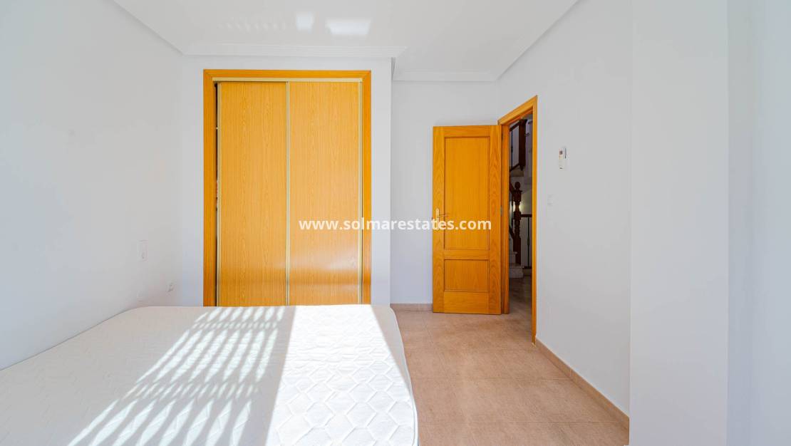 Das Reihenhaus bietet zwei geräumige Schlafzimmer, ein Badezimmer und ein Gäste-WC. Zwei Patios und zwei Terrassen laden dazu ein, das mediterrane Klima das ganze Jahr über im Freien zu genießen. Von der Terrasse und dem privaten Solarium genießt man einen herrlichen Meerblick – ein zusätzlicher Anreiz für alle, die einen entspannten Lebensstil an der Küste suchen.